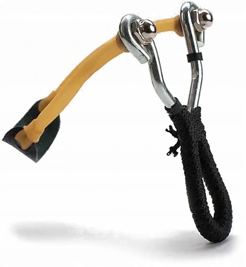 Она имеет прочные и долговечные резиновые ленты и корзину, позволяющую вы сможете выстрелить снарядом на расстояние дажедо 500 м. Рукоятка эргономичной формы с противоскользящей поверхностью идеально лежит в руке — пользоваться рогаткой не устанете даже после множества выстрелов.