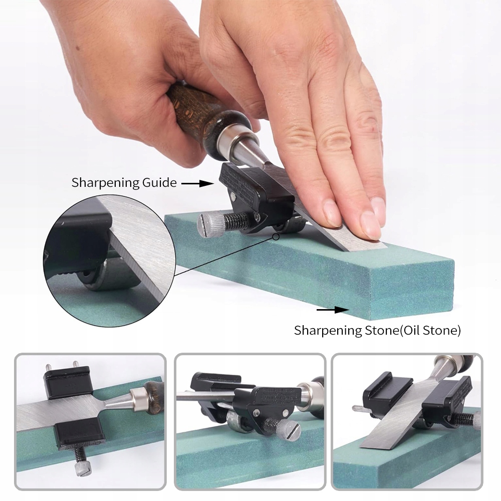 5. Направляющая для заточки и точильный камень. Регулируемая направляющая для заточки позволяет добиться бритвенно-острой кромки ваших инструментов, поэтому вы никогда больше не испачкаете кромку долота. Двусторонний точильный камень с разной зернистостью позволяет разделить различные потребности в заточке и обслуживании.