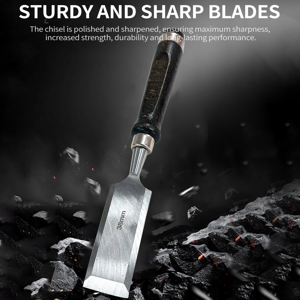 2. Стальные лезвия CR-V 60. Эти стамески по дереву изготовлены из хром-венадиевой стали с твердостью CR-V 60, обеспечивающей длительную остроту и гладкую поверхность. Долото полируется и затачивается для обеспечения максимальной остроты, повышенной прочности, долговечности и долговечности.