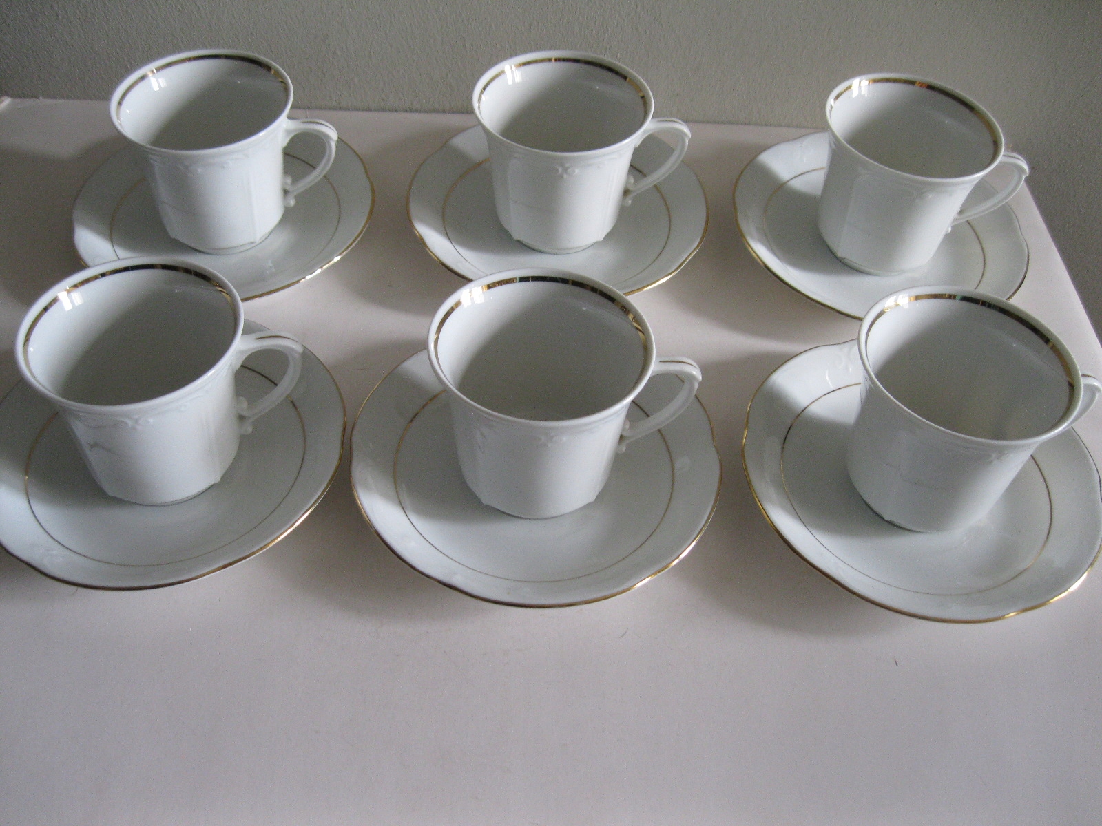 Оригинальные, очень декоративные, старые, набор, в форме, просторные чашки Chodzież. Кубки включены с подставками. Изготовлен из хорошего качества, нежного, полупрозрачного, белого фарфора, украшенного нажатием с рельефом и отделана позолочкой. Набор, сохраненный в очень хорошем состоянии, все без повреждений, без функциональных следов. Подписанный. Я рекомендую!