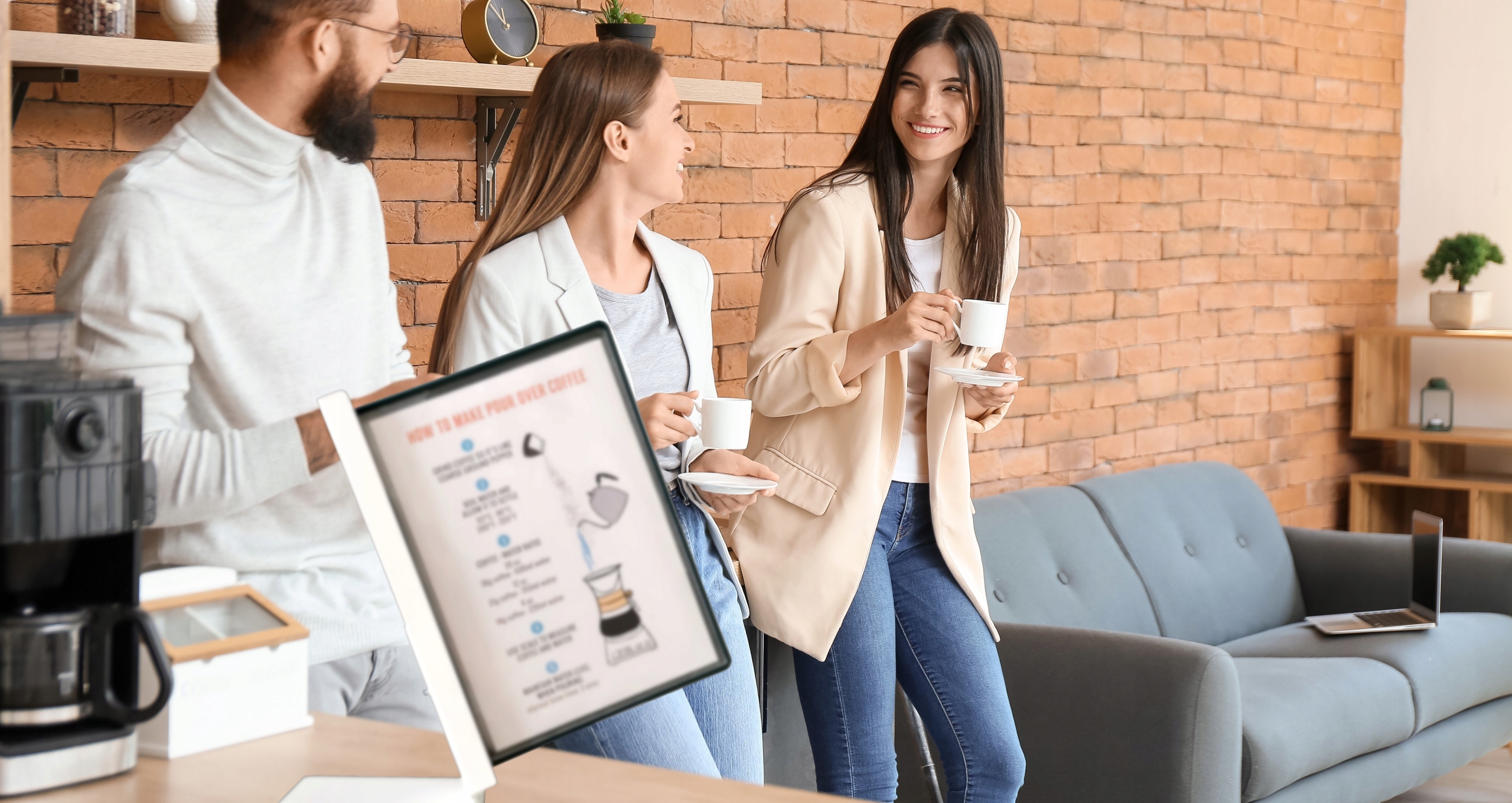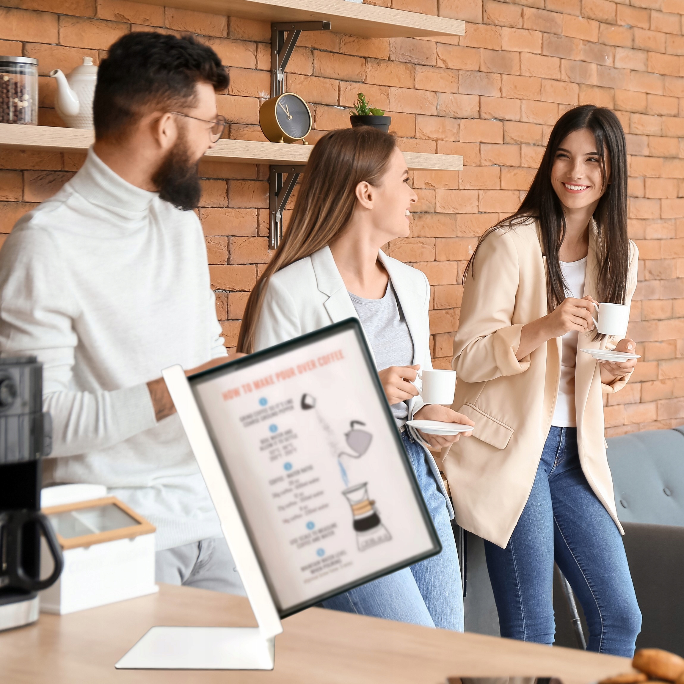 ✅ Позволяет разместить презентацию где угодно: на столе, прилавке или полке.