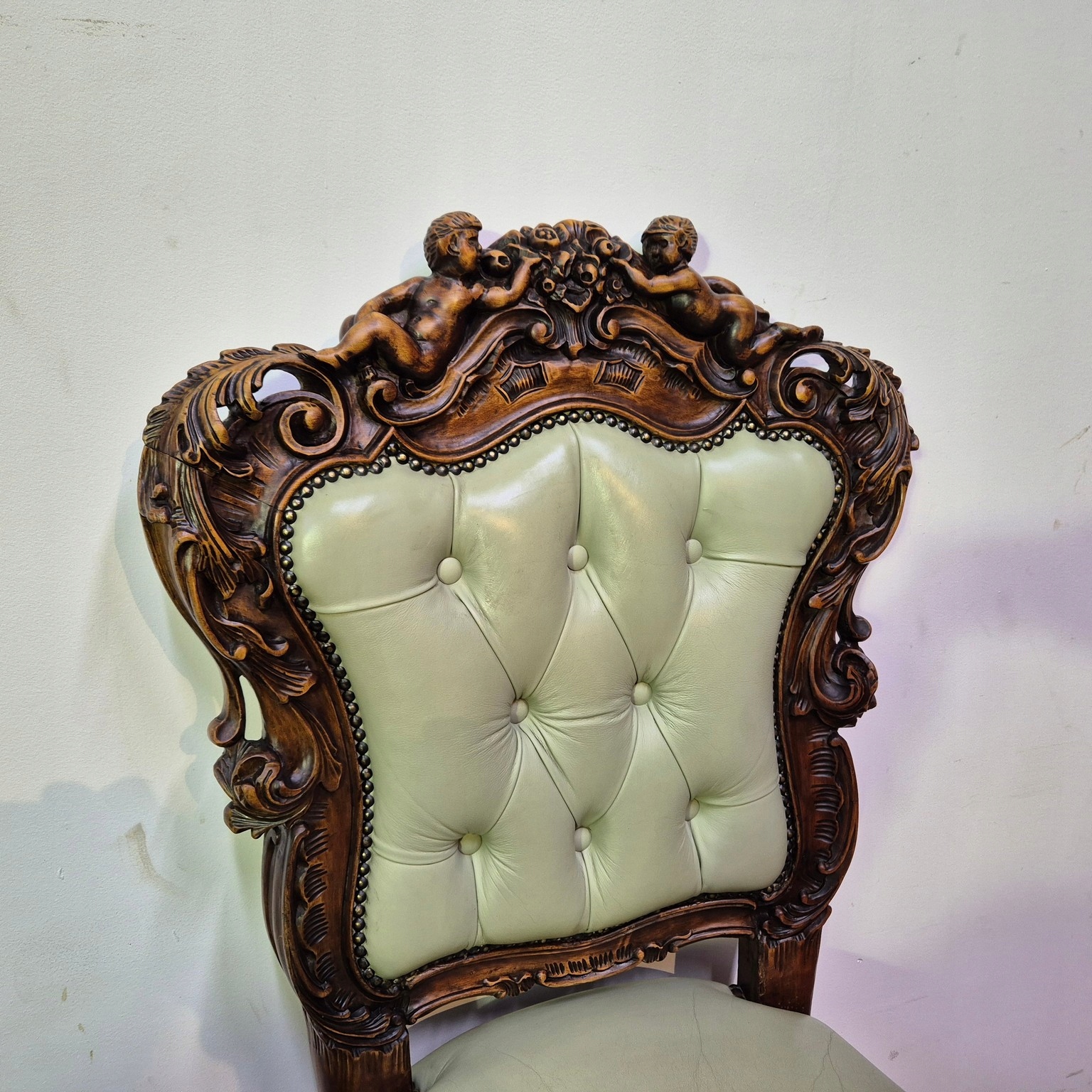 Набор из стола в стиле барокко + 4 стульев из натуральной кожи французского ореха