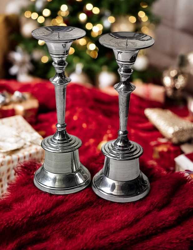 Набор стильных подсвечников из металла никелированный 31,5 см 2 шт.