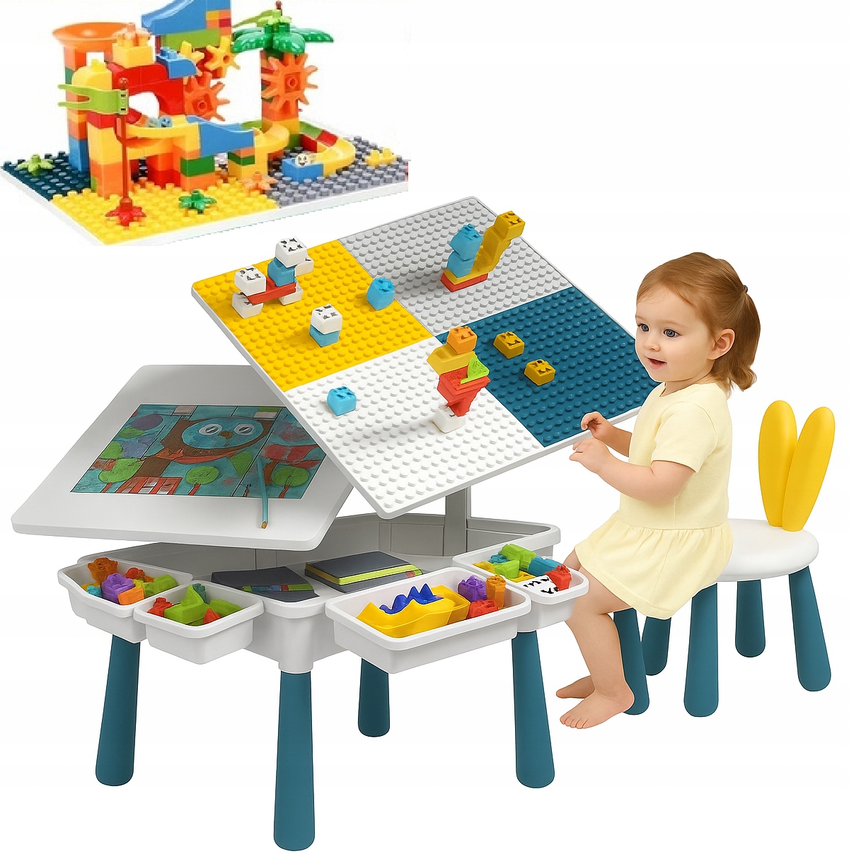 НАБІР СТОЛИК СТІЛЬНИЦЯ ДЛЯ БЛОКІВ ЛЕГО БАГАТОФУНКЦІОНАЛЬНИЙ + СТІЛЕЦЬ + 206 БЛОКІВ