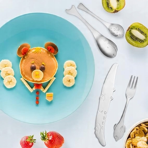 ⭐ ⭐ ⭐ набор сотовых приборов Vicloon, 4 из нержавеющей стали для детей, набор столовых приборов, самостоятельные ложки для обучения пищи, набор столовых приборов, столовых приборов, нож/вилка/вилка/ложка для домашнего использования на кухне (серебро)