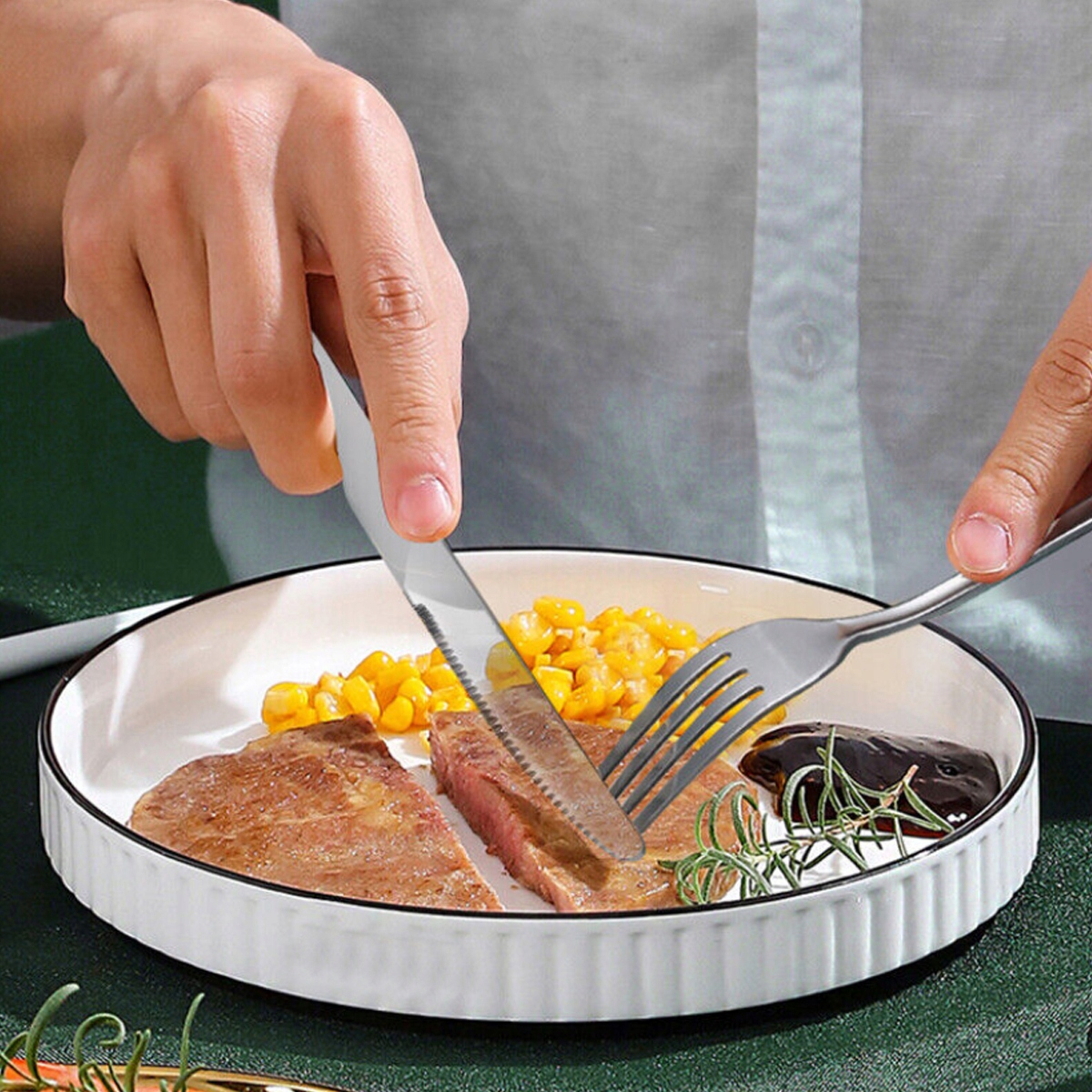 - Вы будете дополнять как ужин, так и десертное блюдо , и, например, вы обрежете мясо на тарелке, сидя с близкими за столом