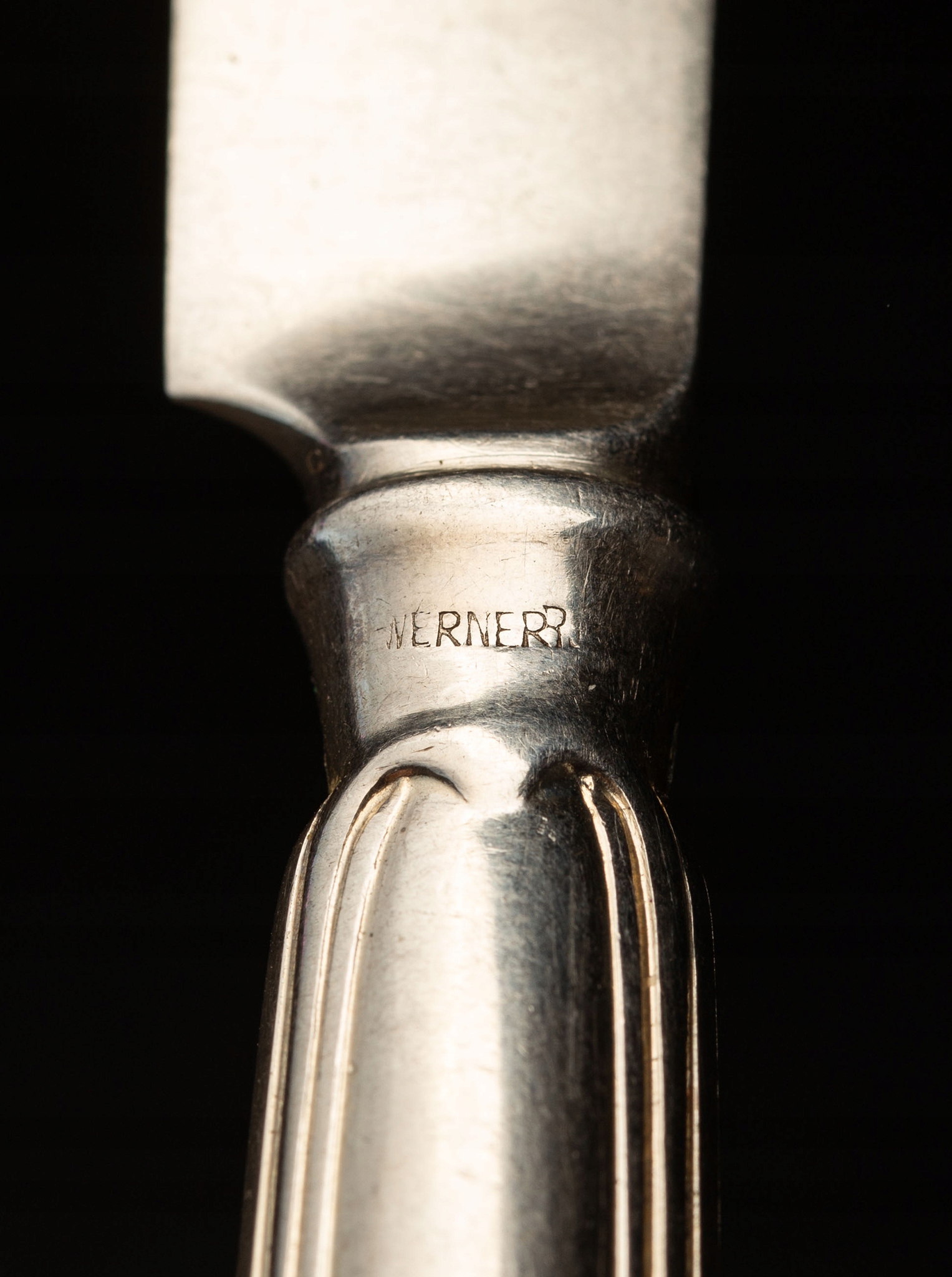 Предметом аукциона является набор серебряных столовых приборов, изготовленных в мастерской варшавского ювелира Теодора Вернера. В наборе 30 элементов: