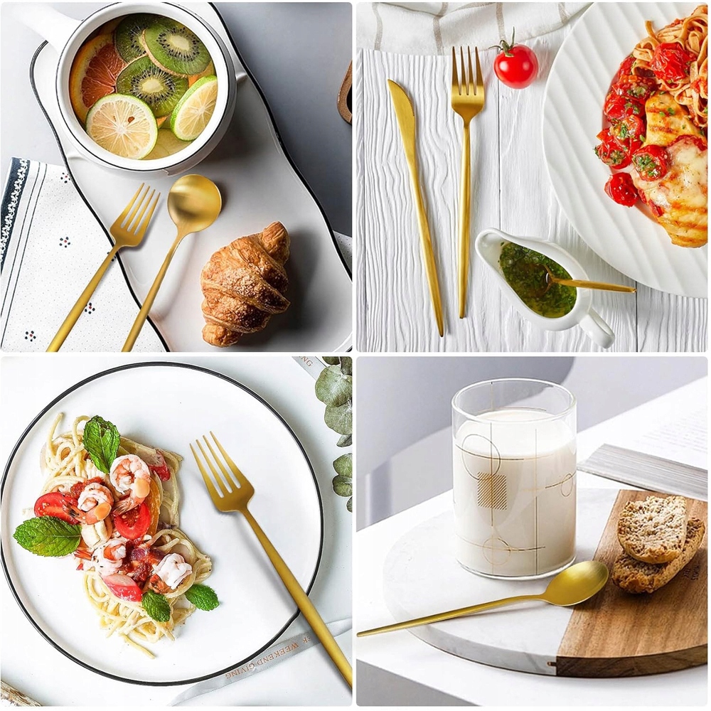 Чрезвычайно элегантный и полный набор столовых приборов на 6 персон, который изменит ваши повседневные трапезы и торжественные вечеринки! Золотистый цвет придает блеск, а нержавеющая сталь высочайшего качества гарантирует непревзойденную долговечность. Это сочетание превосходного дизайна, удобства использования и необычайной долговечности.