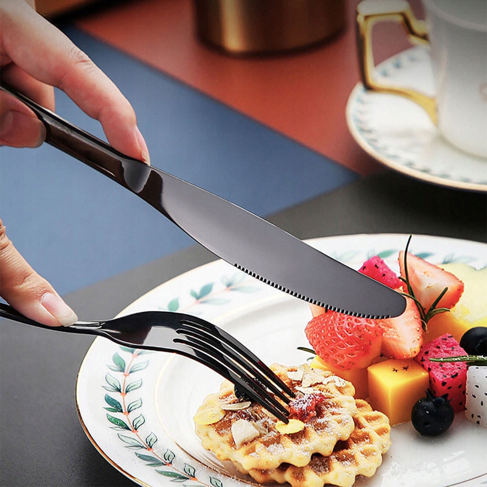 Долговечность: Набор столовых приборов изготовлен из нержавеющей стали 18/0, чрезвычайно устойчивой к ржавчине. Они прочны и устойчивы к частому мытью. Столовые приборы из нержавеющей стали подходят как для повседневного использования, так и для особых случаев. Они привлекают внимание независимо от того, накрываете ли вы стол для позднего завтрака или ужина с друзьями.
