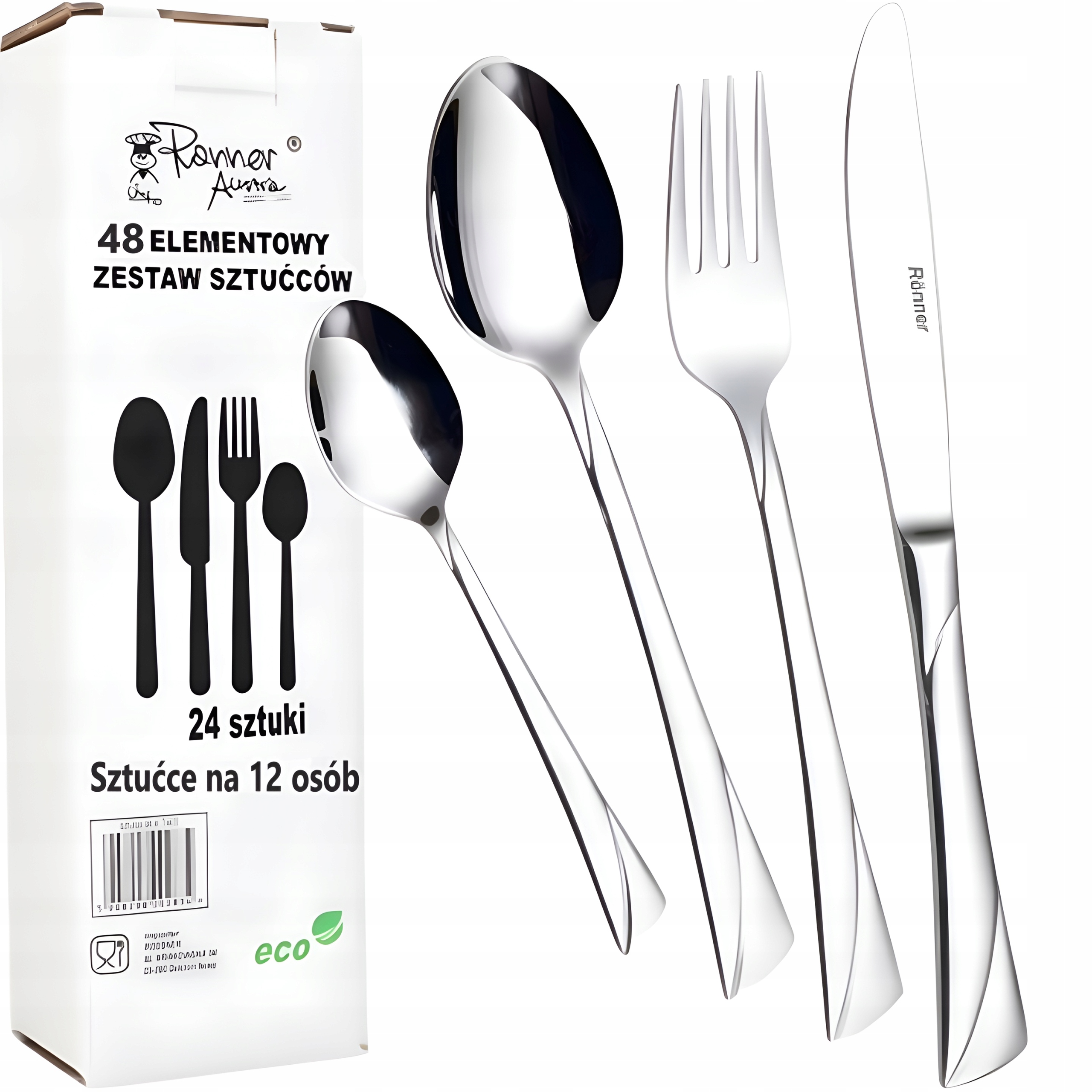 НАБОР СТАЛЬНЫХ СТОЛОВЫХ ПРИБОРОВ ROSSNER 48 EL СЕРВИСНЫЕ СТОЛОВЫЕ ПРИБОРЫ НА 12 ЧЕЛОВЕК