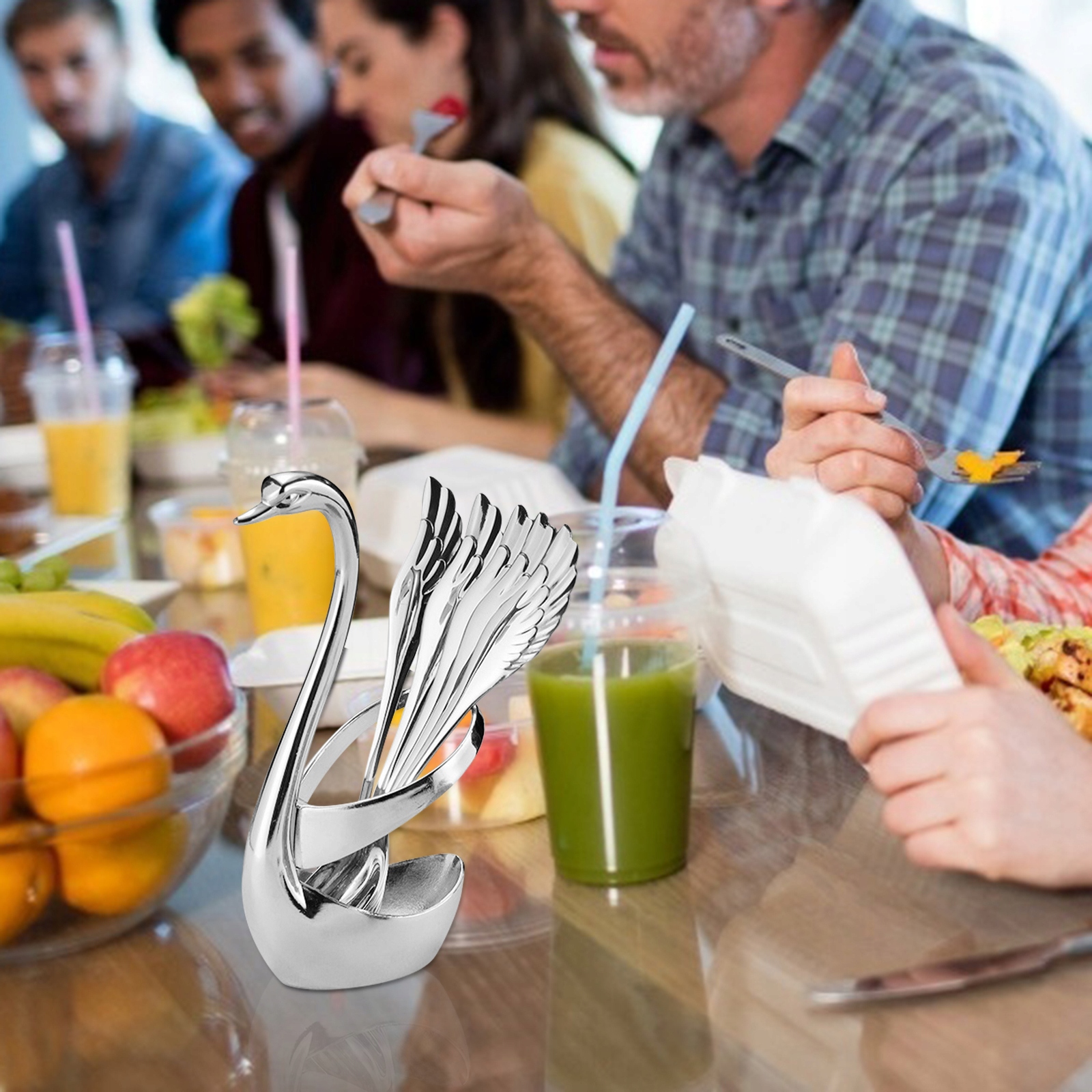 НАБОР СТОЛОВЫХ ПРИБОРОВ С ЛЕБЕДЕМ, ПОДСТАВКОЙ И 6 ВИЛКАМИ, НЕРЖАВЕЮЩАЯ НЕРЖАВЕЮЩАЯ