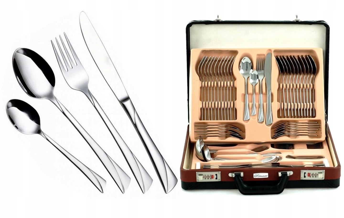 СТОЛОВЫЕ ПРИБОРЫ ДЛЯ ЧЕМОДАНА 72 шт. вилки ложки ножи ГЛЯНЕЦ