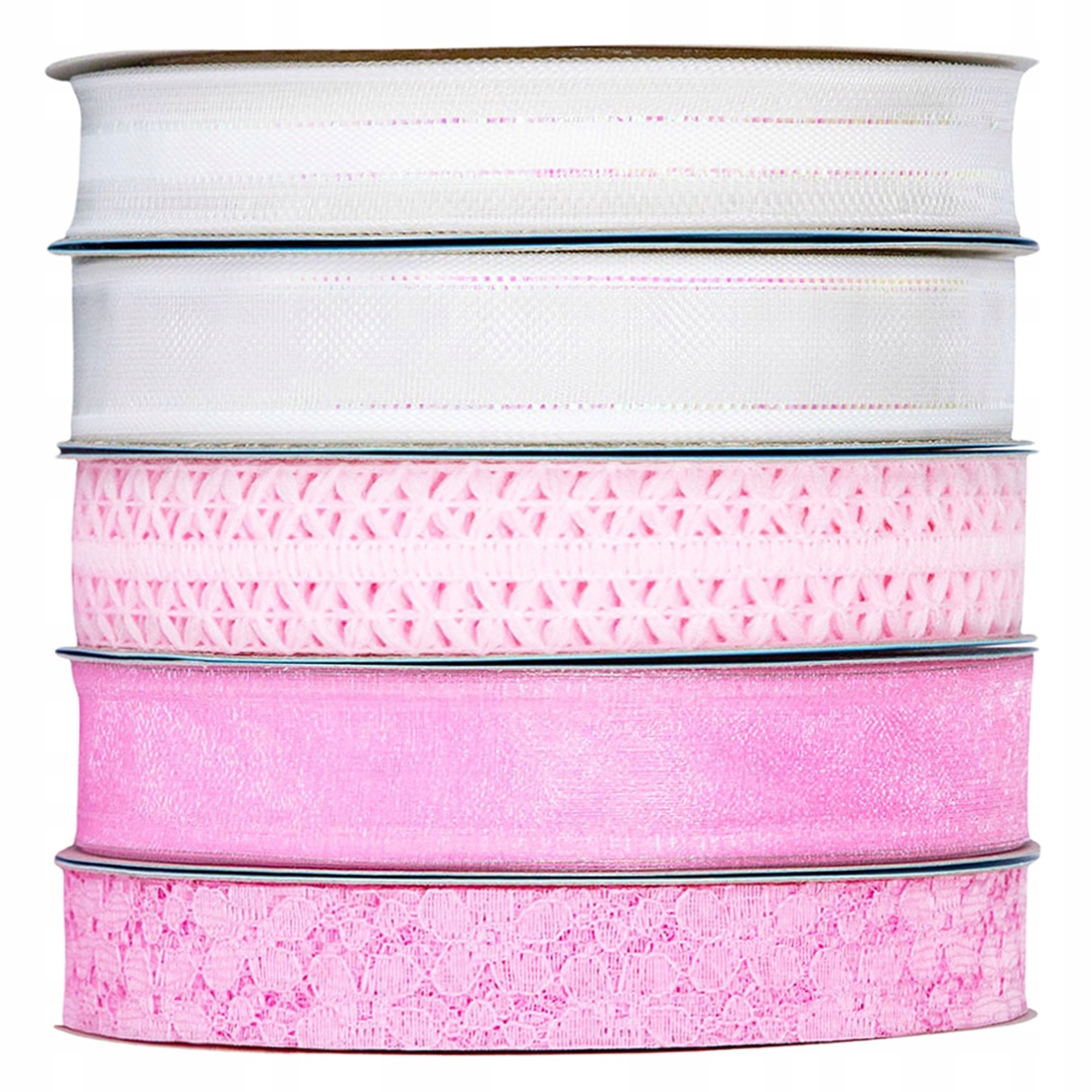 ленточный набор "Крещение розового" 2см/10 м - 5 штук