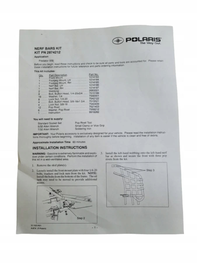 Оплачивая «NERF BARS KOMPLET ZESTAW POLARIS PREDATOR 500 OEM 2874212», вы можете быть уверены, что данное изделие из каталога «Ступени (подножки)» будет доставлено из Польши и проверено на целостность. В цене товара, указанной на сайте, учтена доставка из Польши. Внимание!!! Товары для Евросоюза, согласно законодательству стран Евросоюза, могут отличаться упаковкой или наполнением.