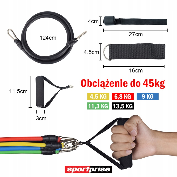 Комплект дает вам выбор из более чем 30 различных уровней сопротивления в зависимости от количества ремней, прикрепленных к ручке. Вы можете выбрать 1, 2, 3, 4 или все 5 полосок.