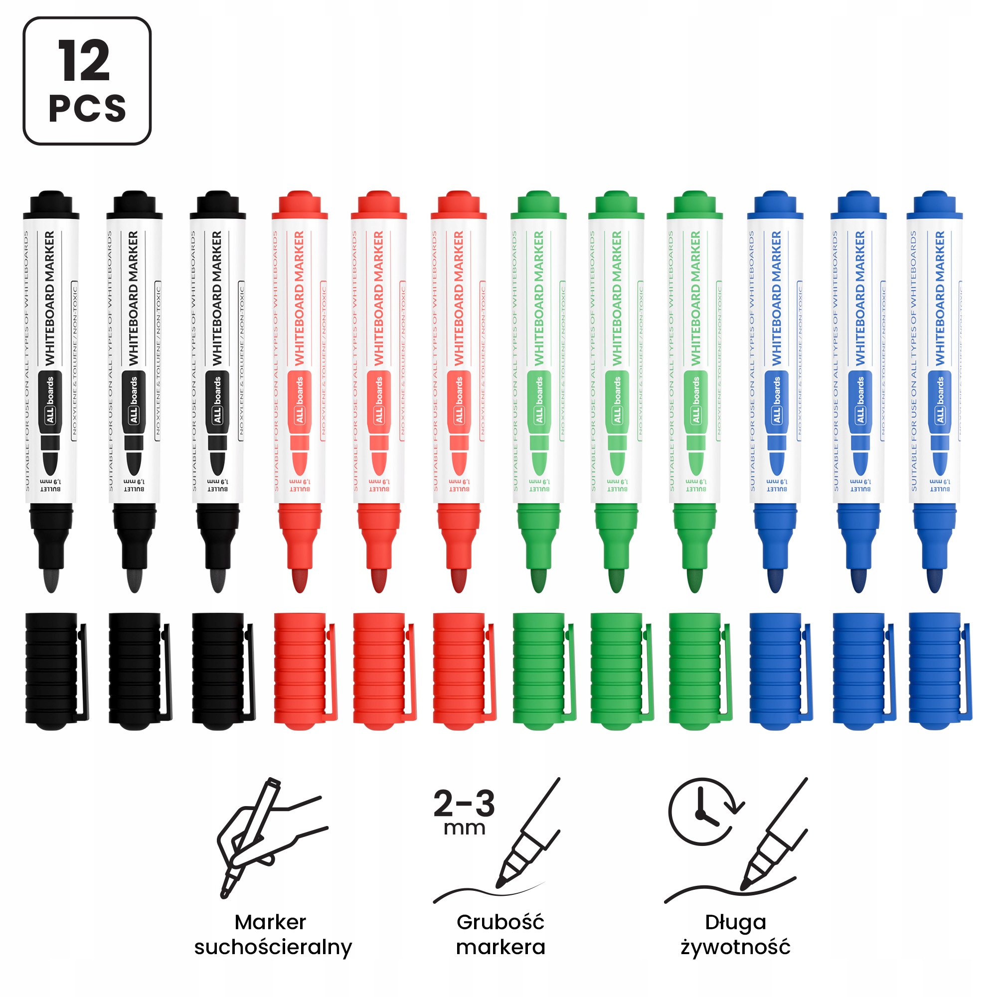 Набор сухостираемых маркеров для досок ALLboards — 3 x 4 цвета