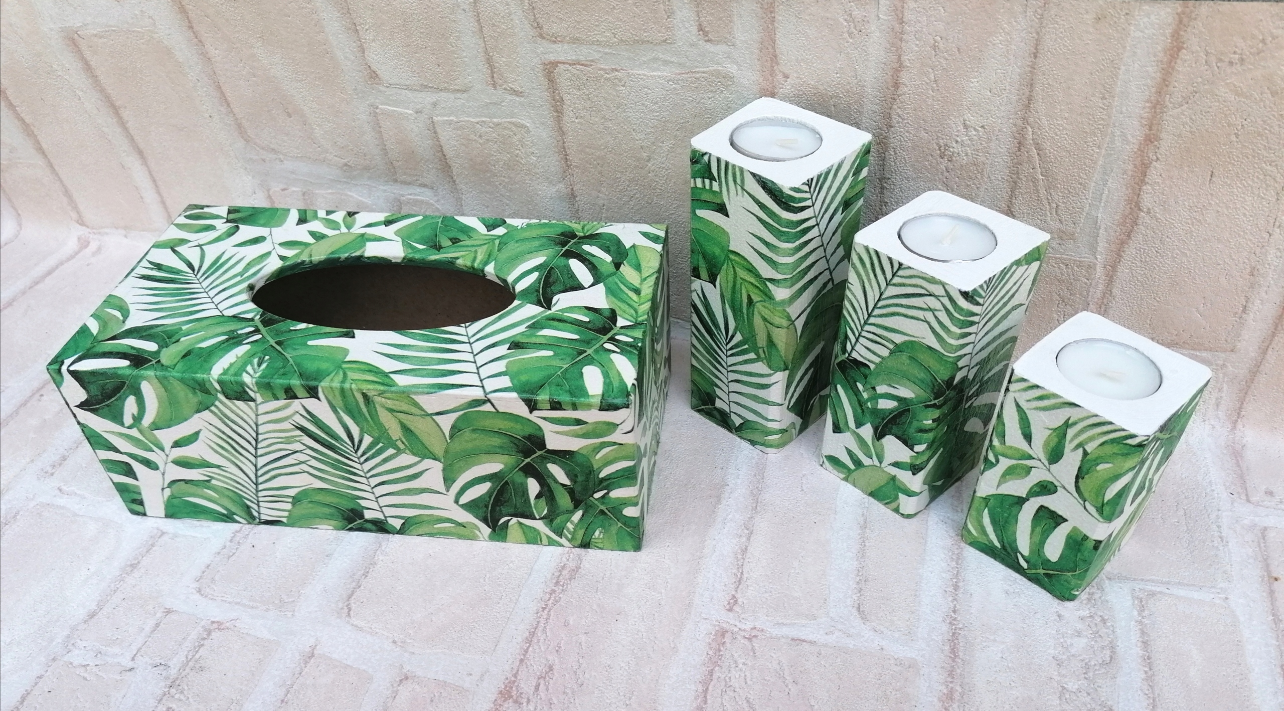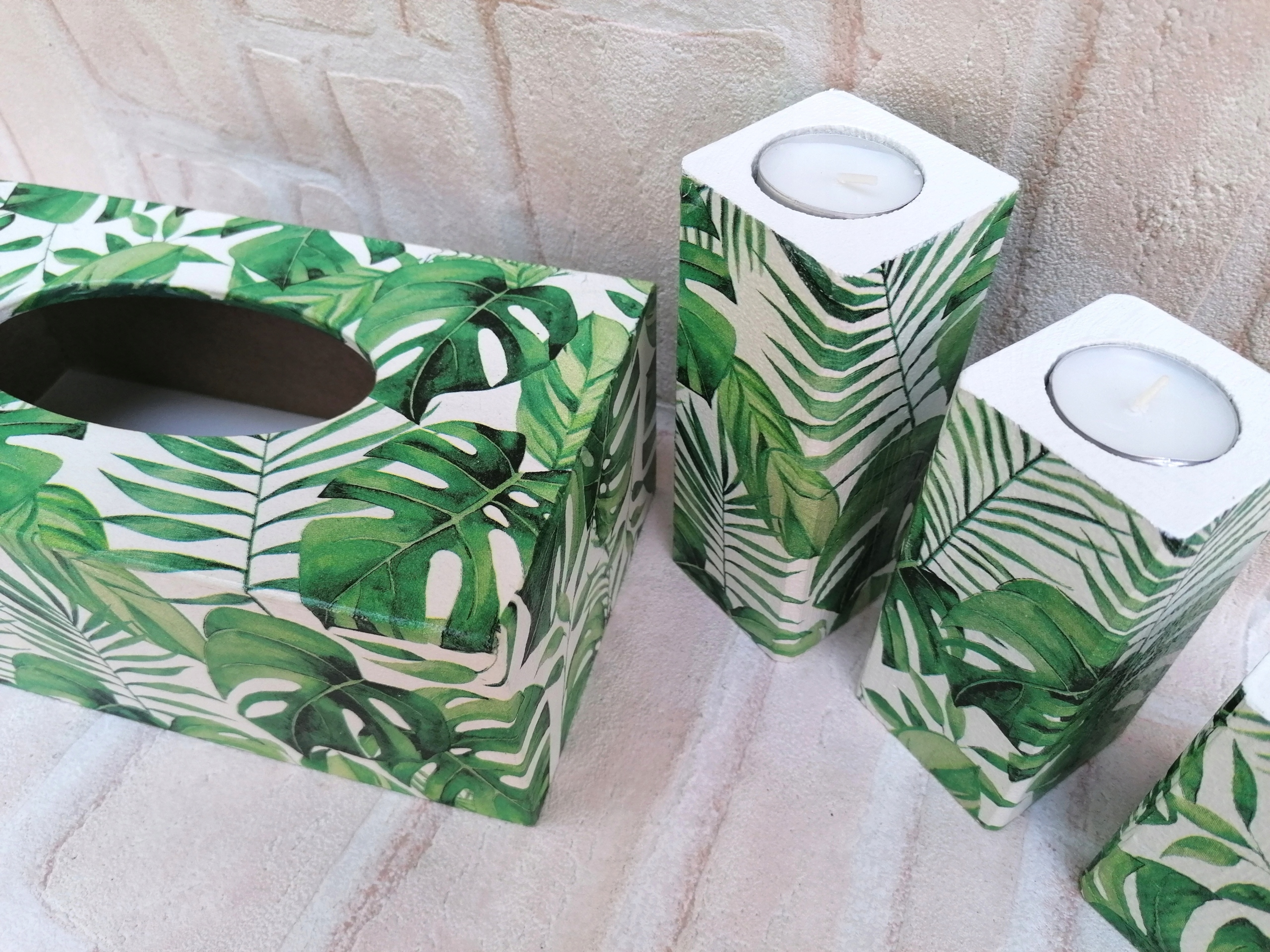 Набір свічники + хустка монстера тропік