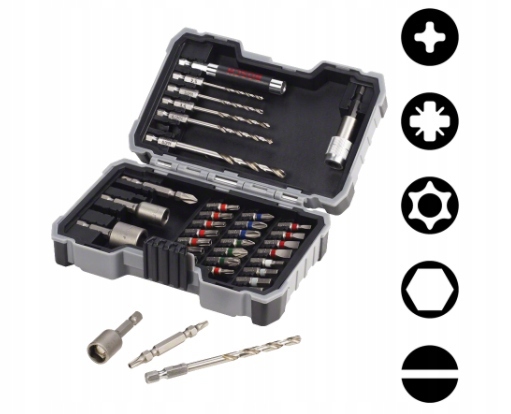 Набор отверток и спиральных сверл Bosch из быстрорежущей стали по металлу повышенной твердости, 35 шт.