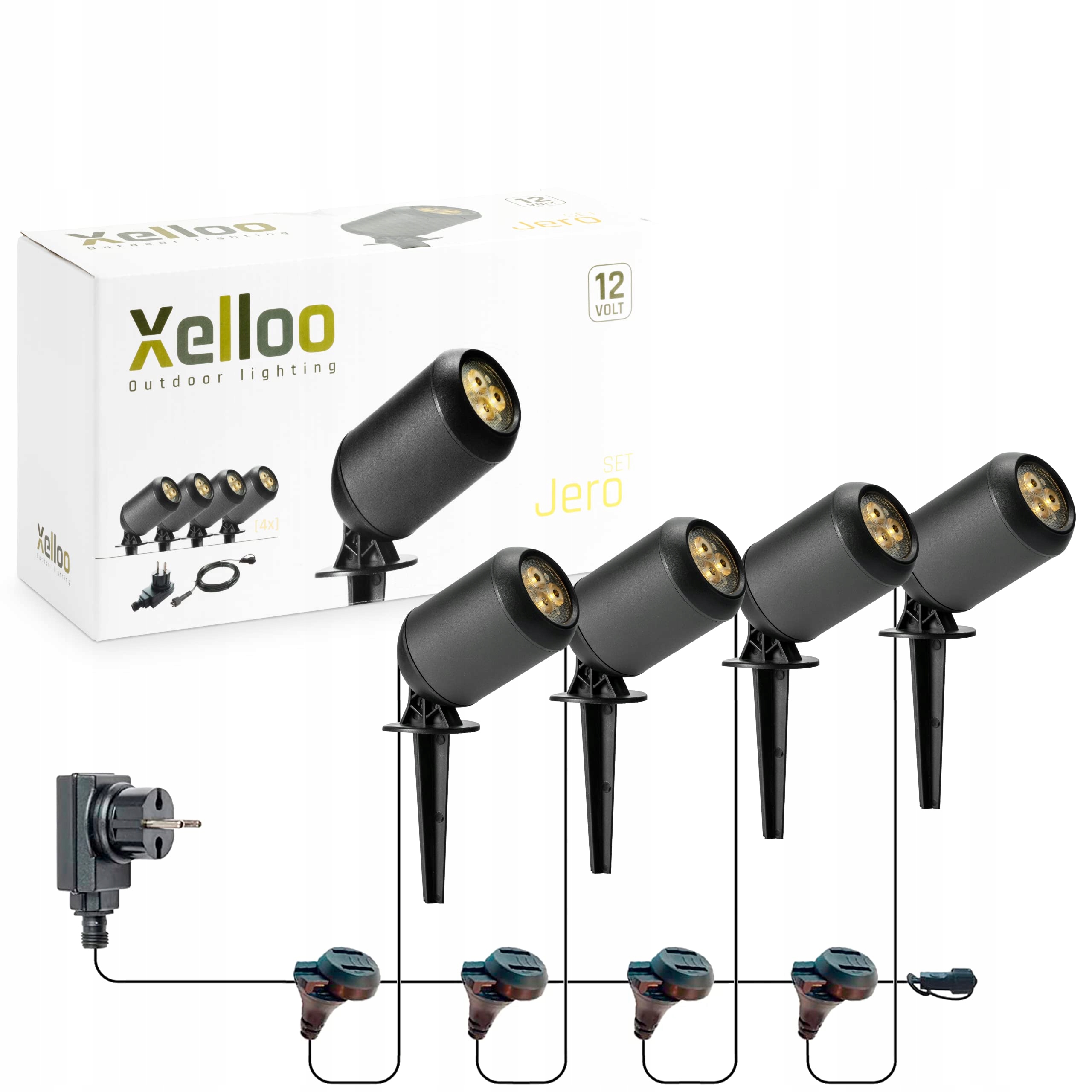 - название позиции: комплект садового освещения Xelloo® JERO, 12 В, 4 дизайнерских светодиодных светильника из алюминия/ПВХ мощностью 1 Вт, теплый белый, с заземляющим штырем, класс герметичности IP44 и практичное выдвижное соединение.