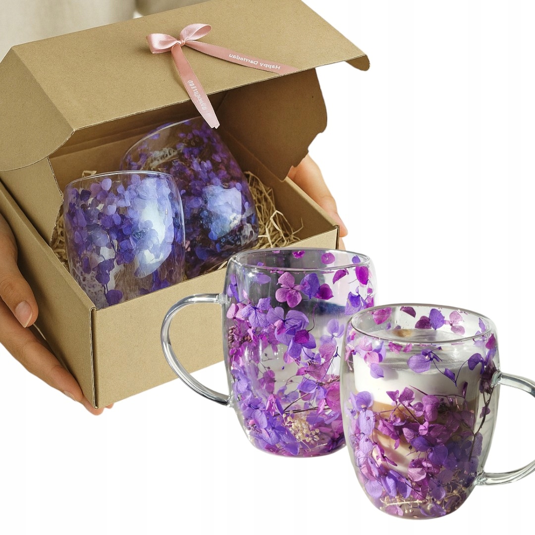 ✨НАБОР ТЕРМОСТАКАНОВ ДЛЯ КОФЕ И ЧАЯ С СУХОЦВЕТАМИ ВНУТРИ ЦВЕТОВ - ФИОЛЕТОВЫЕ ГИДРЕНИ - ГОТОВЫЙ ПОДАРОЧНЫЙ НАБОР ✨