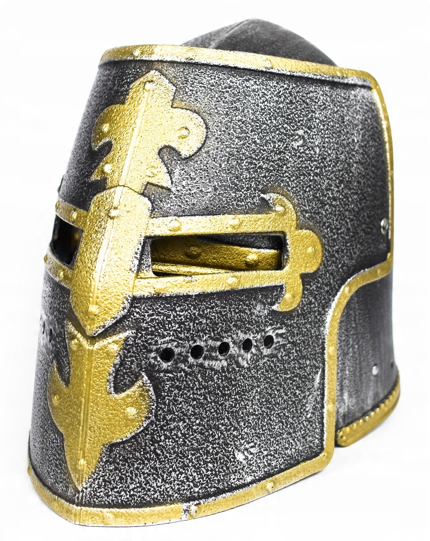 Рыцарский шлем с открывающимся забралом изготовлен из прочного и легкого материала.