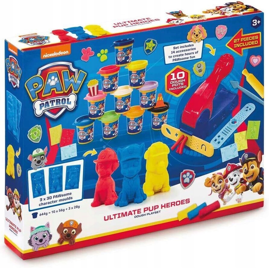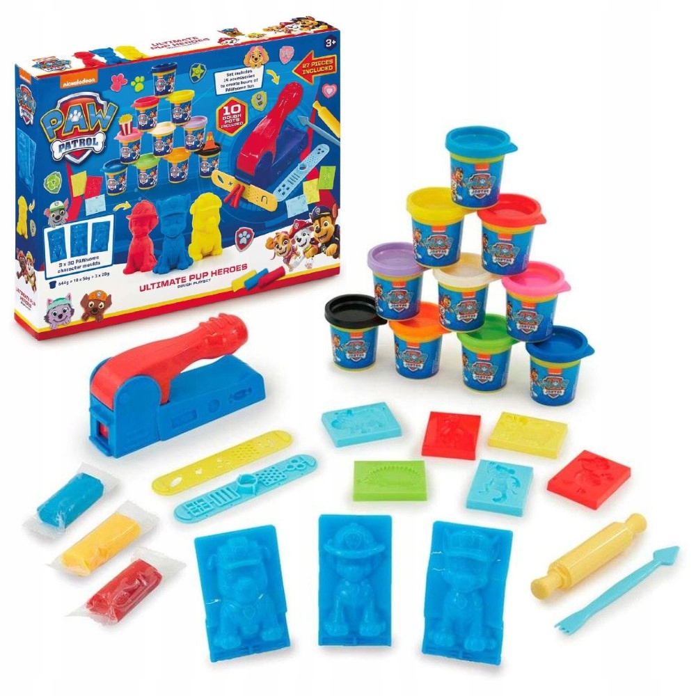 Этот замечательный большой набор патрульных тесто для теста содержит все, что вам нужно, для часов развлечения с резанием форм, инструментов, сжимающей машиной и множеством тортов! Кроме того, сделайте трех трехмерных персонажей из собачьего патруля с 3D -формами. В каком приключении с тортами сегодня будут щенки?