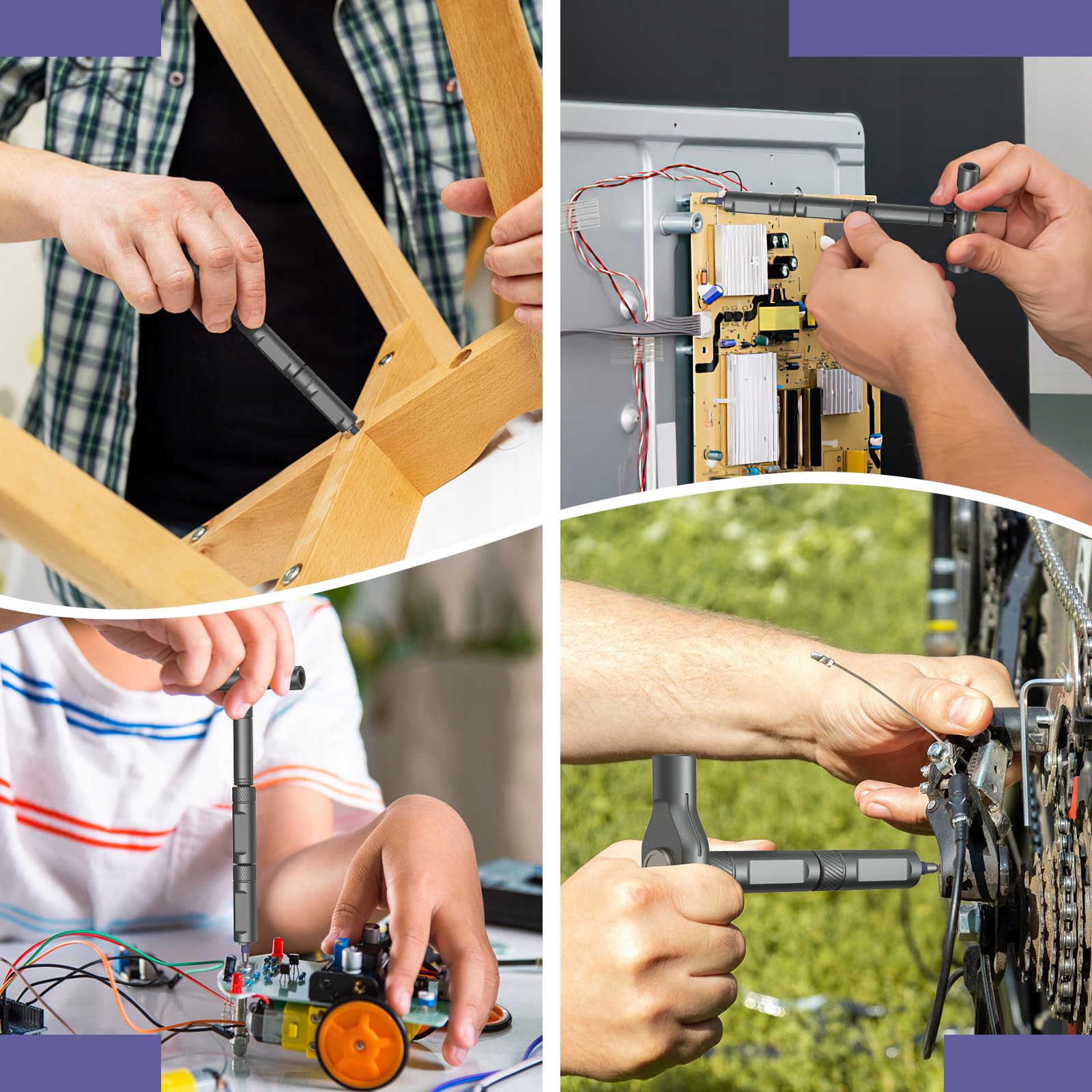 Красочный и многофункциональный: в набор инструментов для ремонта мобильных телефонов входят разноцветные кольца для бит, которые позволяют быстро найти нужную биту и легко переустановить. Разработанный для бесперебойного и комфортного рабочего процесса, он идеально подходит для точного повседневного ремонта: фотоаппаратов, компьютеров, игровых приставок, деревянных сборок и многого другого.