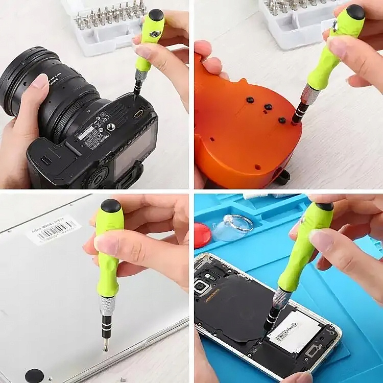 - Набор, состоящий из целых 32 элементов, которые заменят подавляющее большинство обычных отверток