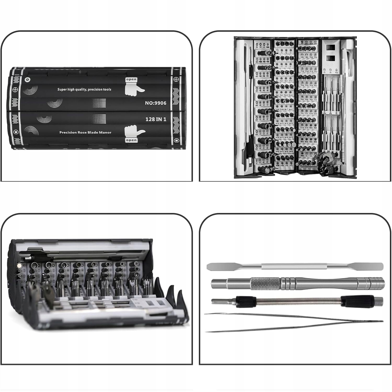 ☑️Набор инструментов для точной механики 128-в-1 включает 122 высококачественных сверла и шесть основных инструментов, в том числе рукоятку отвертки, удлинитель, намагничиватель, размагничиватель, прецизионные пинцеты и двусторонний рычаг. Идеально подходит как для профессионалов, так и для любителей DIY, независимо от того, работают ли они с ноутбуками, смартфонами, фотоаппаратами или очками.
