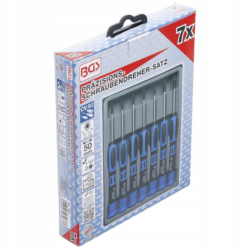 - Точные отвертки t (для torx): T6 x 50 мм - T7 x 50 мм - T8 x 50 мм - T9 x 50 мм - T10 x 50 мм - T15 x 50 мм - T20 x 50 мм