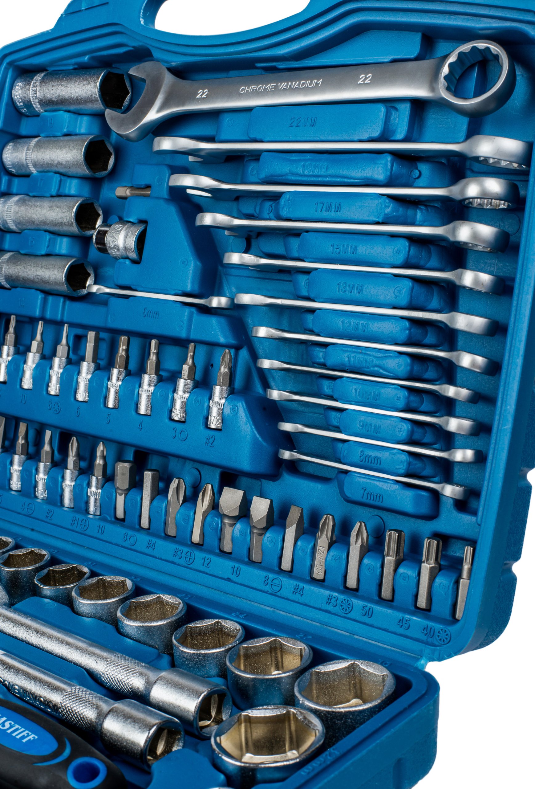 Набор торцевых и комбинированных ключей из хромванадиевого материала (CRV-50 - инструментальная сталь)