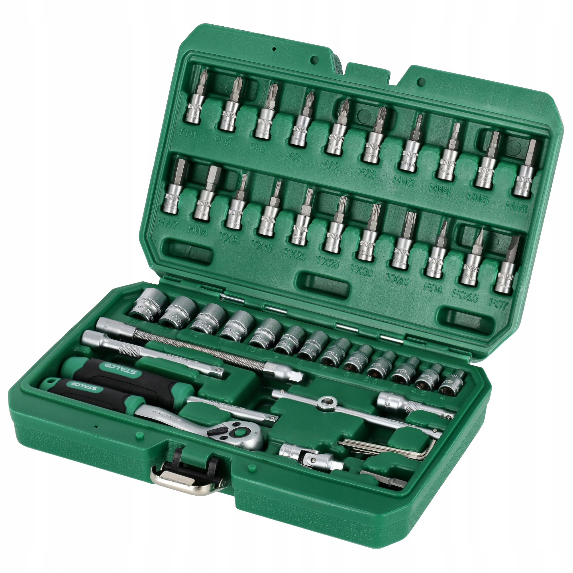 - В наборе 48 элементов, 1/4', трещотка 90 зуб.