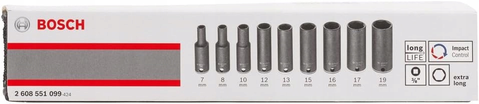 Набор из 9 торцевых ключей Bosch с контролем удара, 7–19 мм, 3/8 дюйма