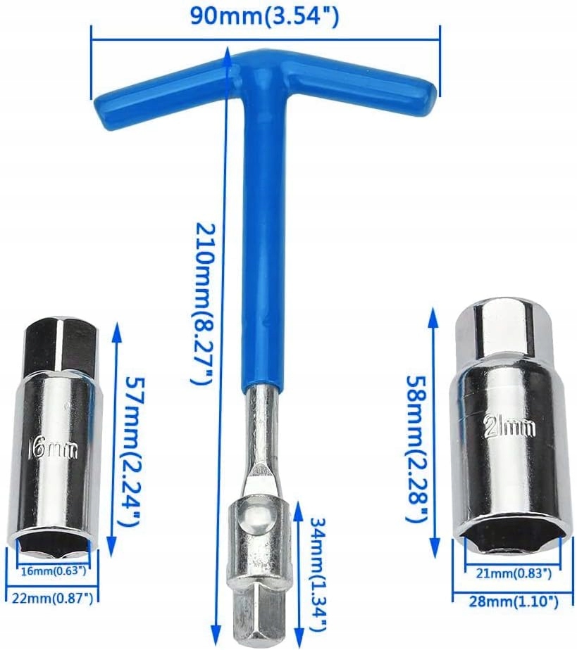 Т-образный торцевой ключ для свечей зажигания диаметром 16 мм (5/8 дюйма) и 21 мм (13/16 дюйма) Набор инструментов для разборки Набор инструментов для установки Карданный шарнир Синий