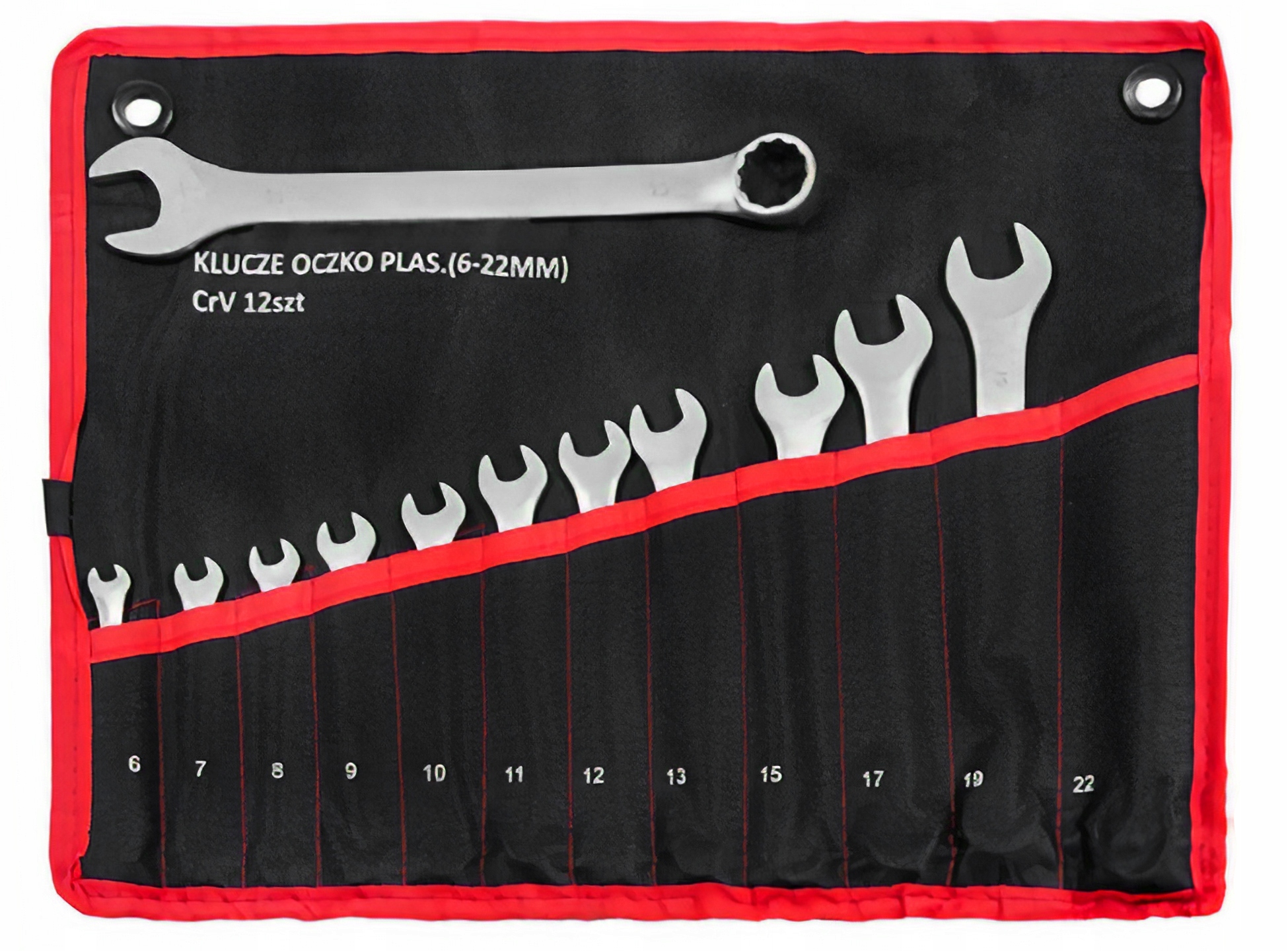 Набор комбинированных ключей CRv упакован в удобный сворачивающийся кейс. поэтому он занимает мало места. Отверстия в верхних углах корпуса позволяют повесить ключи на стену. Чехол изготовлен из очень прочного и долговечного материала. В набор включены самые популярные размеры ключей.