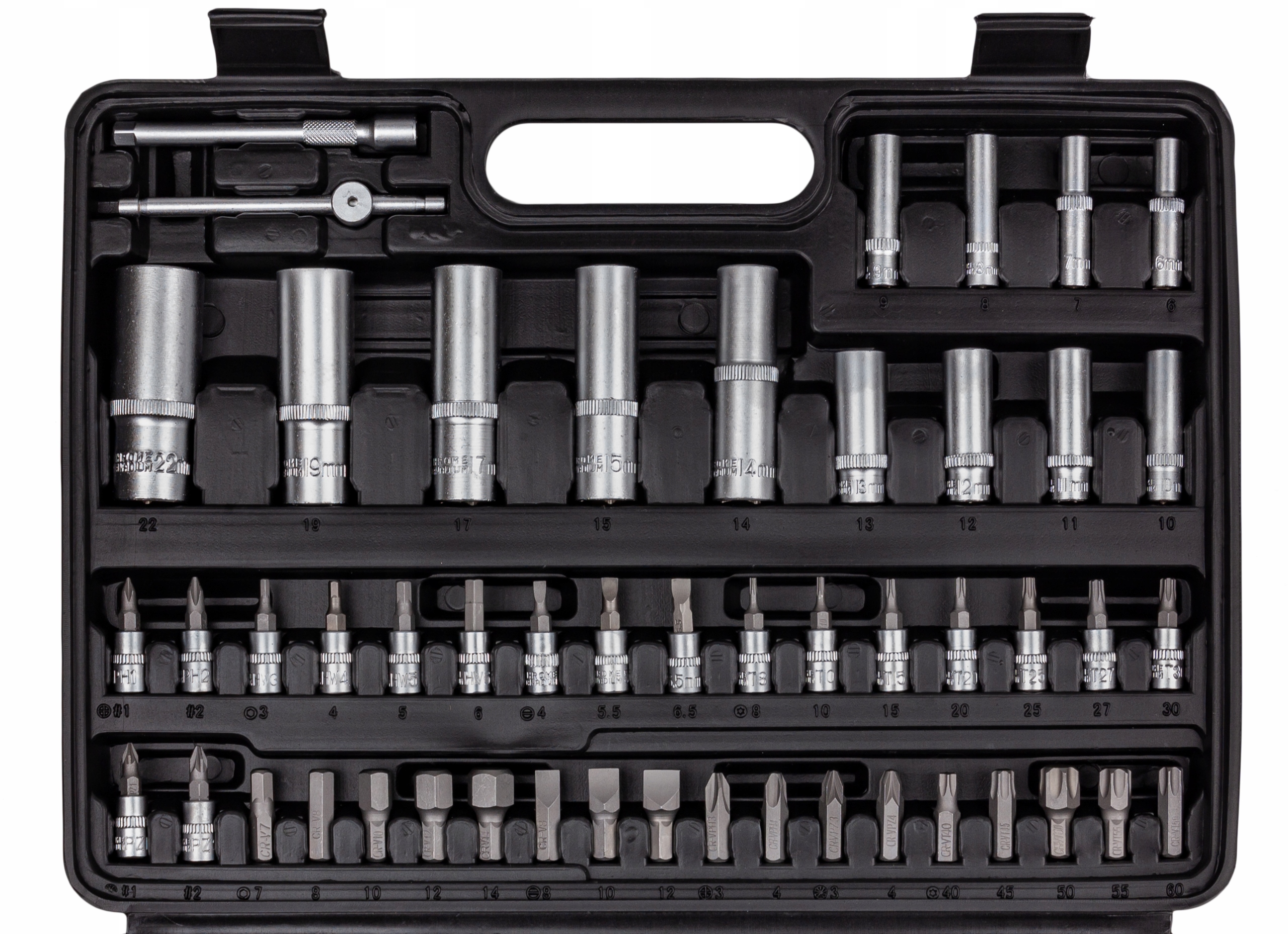 Полный набор розеток обеспечит идеальное соответствие ключей тем или иным потребностям на каждом рабочем месте.