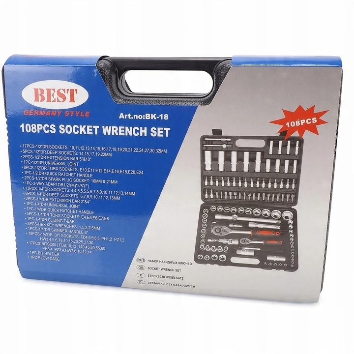 ПРОФЕССИОНАЛЬНЫЙ НАБОР ТОРЦЕВЫХ КЛЮЧЕЙ 108 ЭЛЕМЕНТОВ