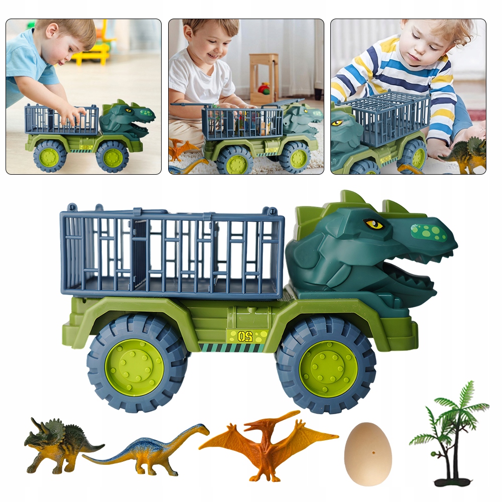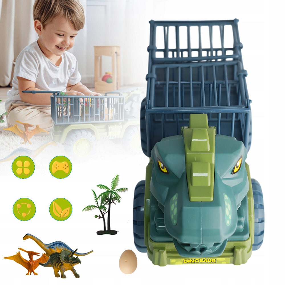 🦖 ПОЛНЫЙ НАБОР ДИНОЗАВРОВ – В комплект входит транспортное средство, 3 динозавра, дерево и яйцо, создающие для детей увлекательный мир доисторических существ. Идеально подходит для творческой игры в воображаемых сценариях.