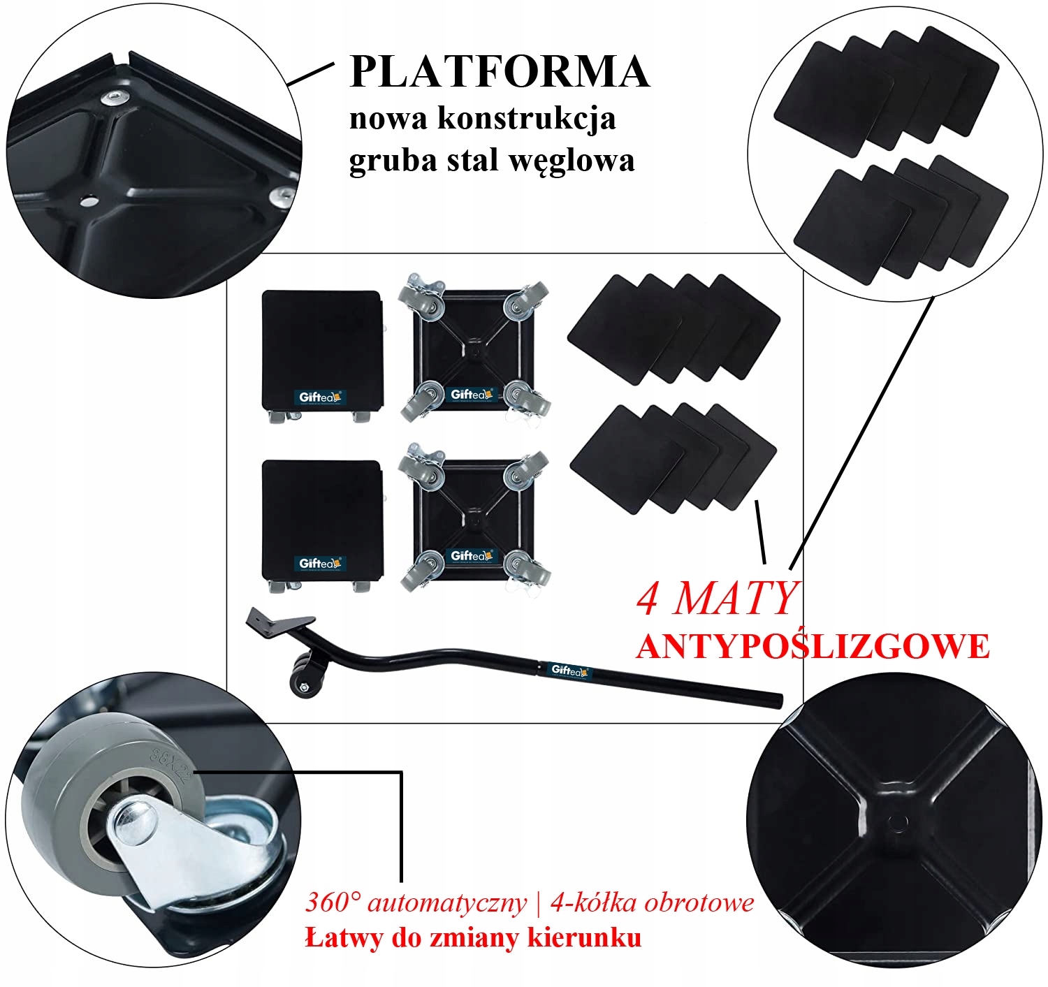 Первый и единственный в Польше! (торговая марка: GIFTEAK®), специализирующаяся на создании инструментов высочайшего качества для перемещения мебели. Мы занимаемся процессом исследований и разработок, производством и распространением продукции в Польше и по всему миру. Откройте для себя бренд GIFTEAK ® — вас ждет еще много интересных предложений!