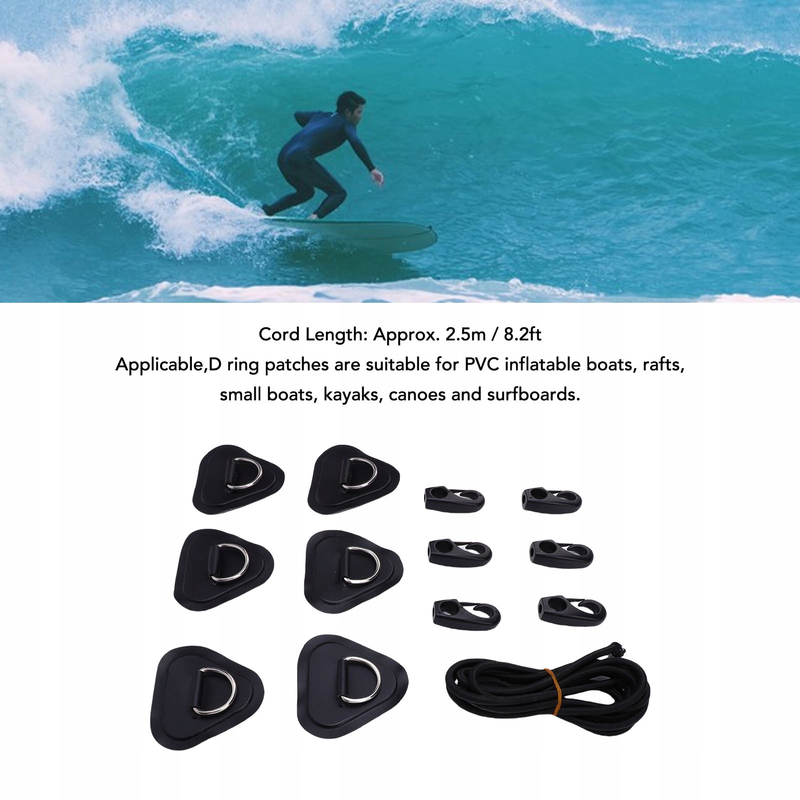 4. Универсальное применение: эти патчи с D-образными кольцами подходят для надувных лодок, плотов, каяков, каяков и досок для серфинга из ПВХ и обеспечивают надежные точки крепления для различных устройств на воде.