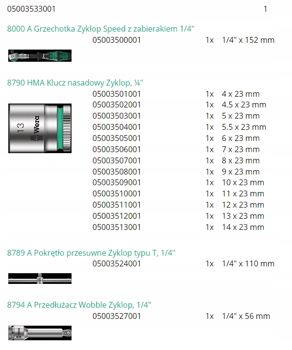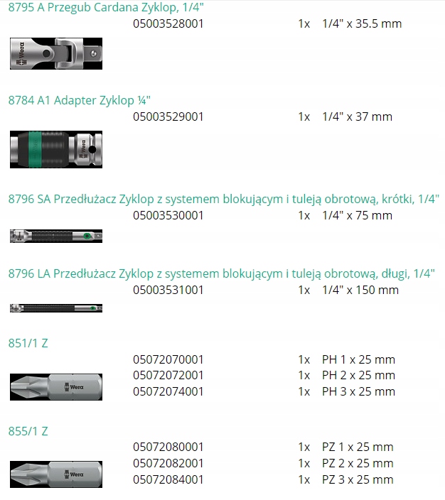 НАБІР ТРІЗЧАТОК ZYKLOP SPEED 1/4''42 ЧАСТИНИ WERA