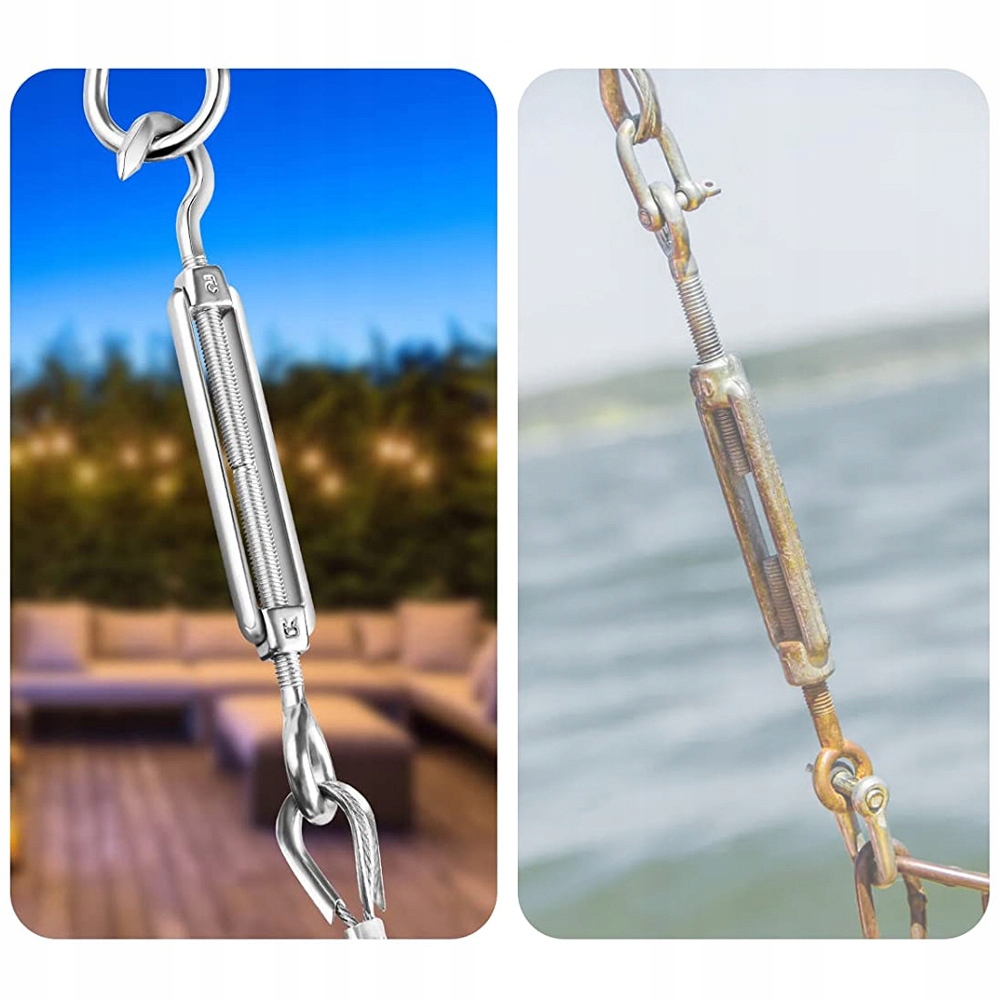 Комплект натяжителей стального троса 3 мм, изготовленный из стали нержавеющая сталь 304, алюминиевая зажимная втулка из алюминия, новая кабельная втулка с двойным отверстием из углеродистой стали, обеспечивает хорошую стойкость к коррозии и ржавчине, твердая и прочная. прочный, позволяет использовать в любых погодных условиях, очень легко собирается и разбирается.