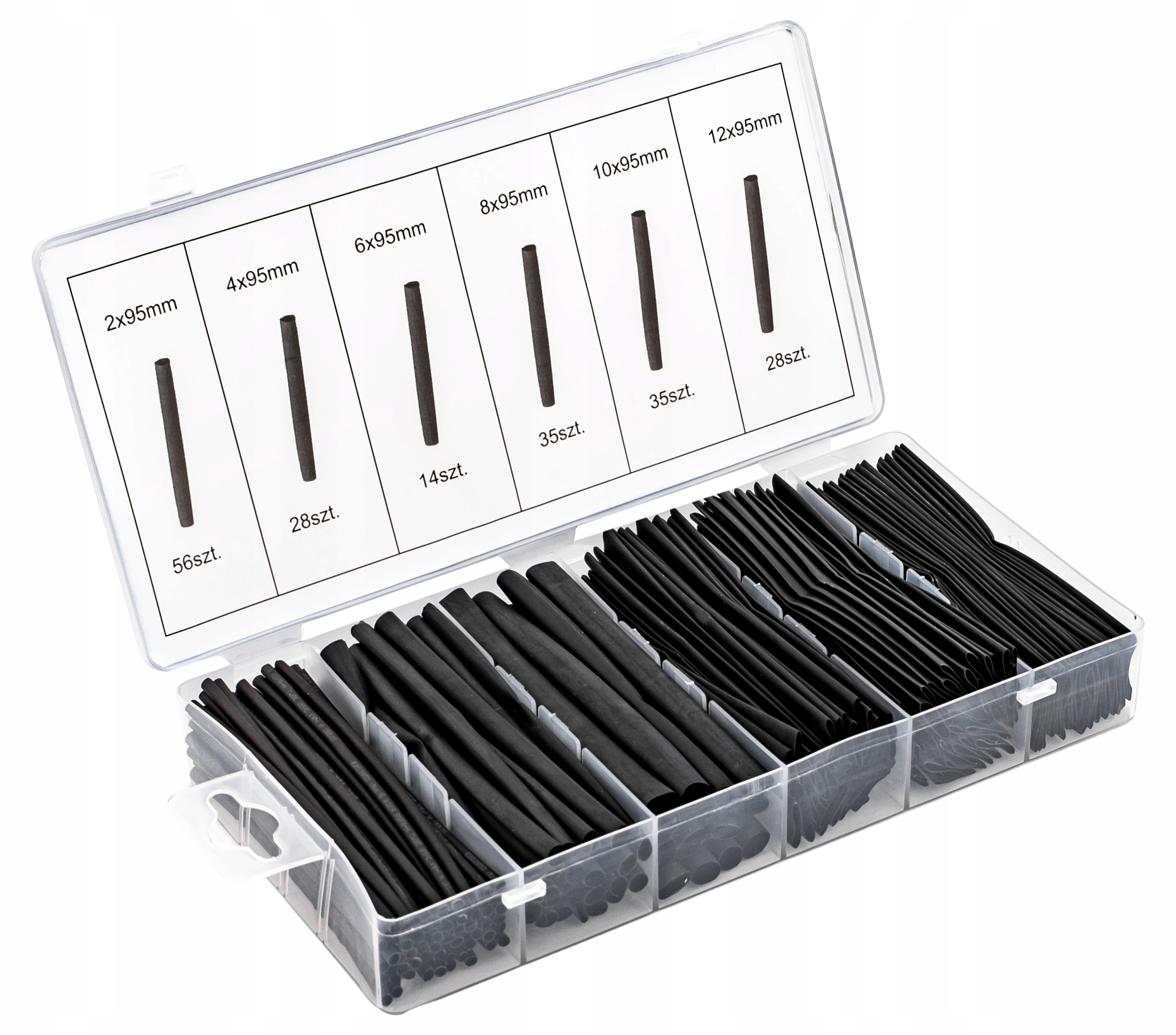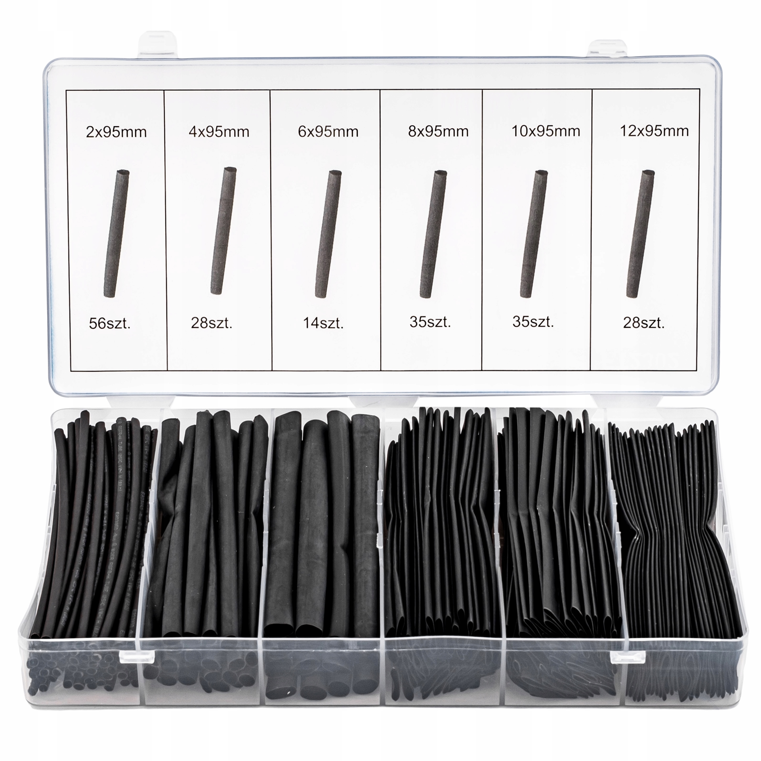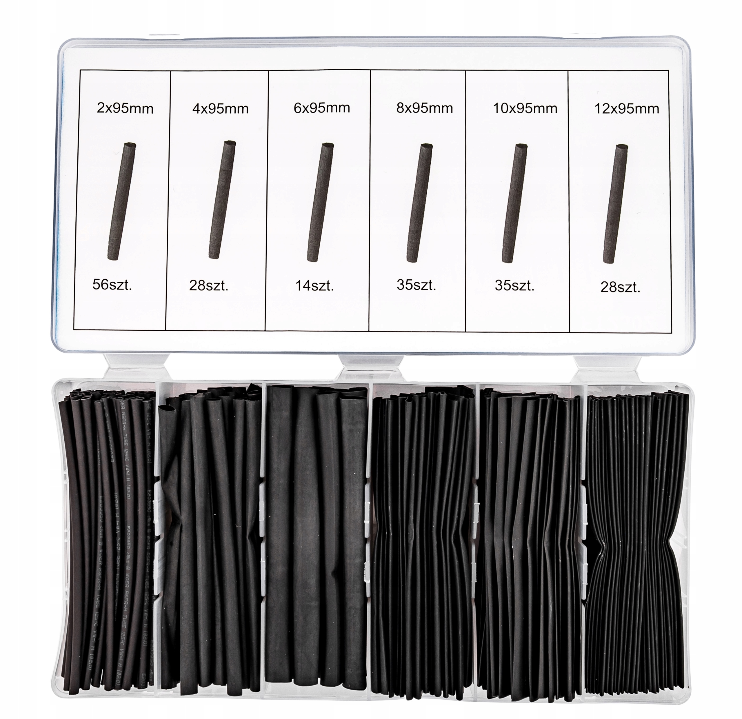 В комплект входит 196 штук термоусадочных трубок 6 популярных размеров.
