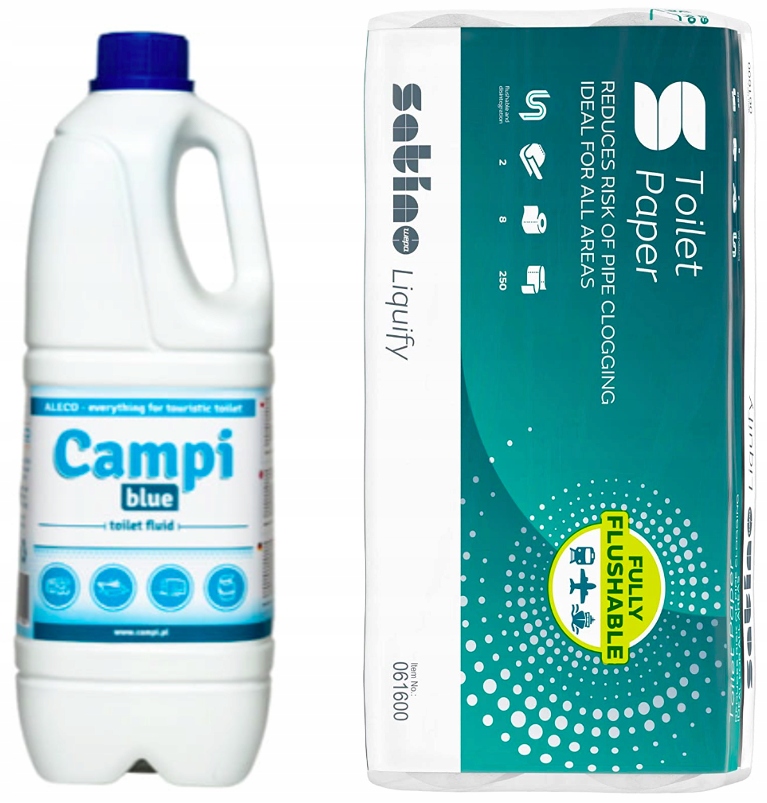 Набор жидкости Campi Blue для туристических туалетов 2 л + растворяющая бумага 8 рулонов