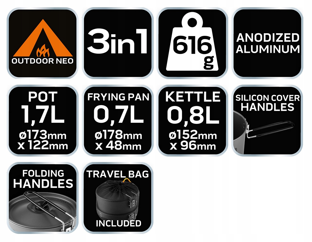 Набір туристичного посуду 3в1 для кемпінгу NEO