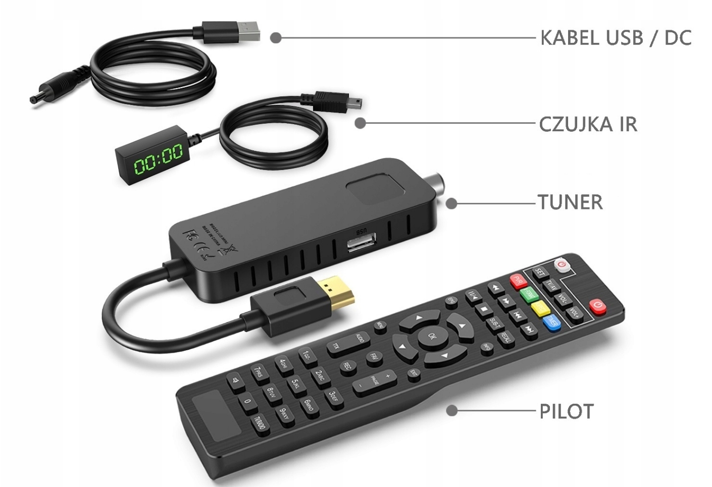 Modern Transer в Mini -версии. Его небольшие размеры означают, что он не занимает дополнительное место и может быть установлено в невидимом месте в задней части телевизора. Набор также включает дисплей, который увеличивает комфорт использования. Тюнер полностью адаптирован и готов к предстоящему изменению в DVB-T2 HEVC.