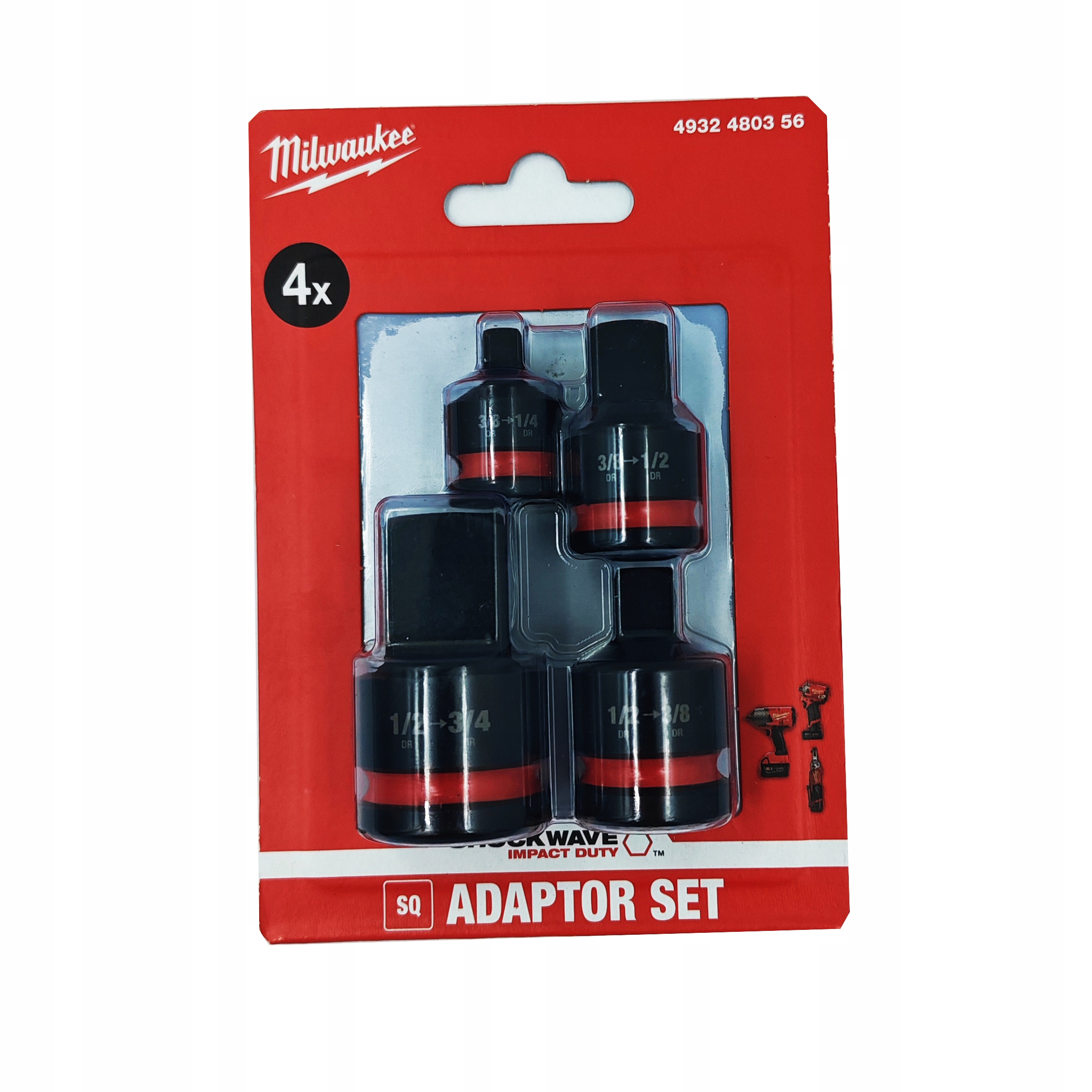 Набір ударних адаптерів Milwaukee 4932480356 4x Зменшення 1/2 1/4 3/4 3/8