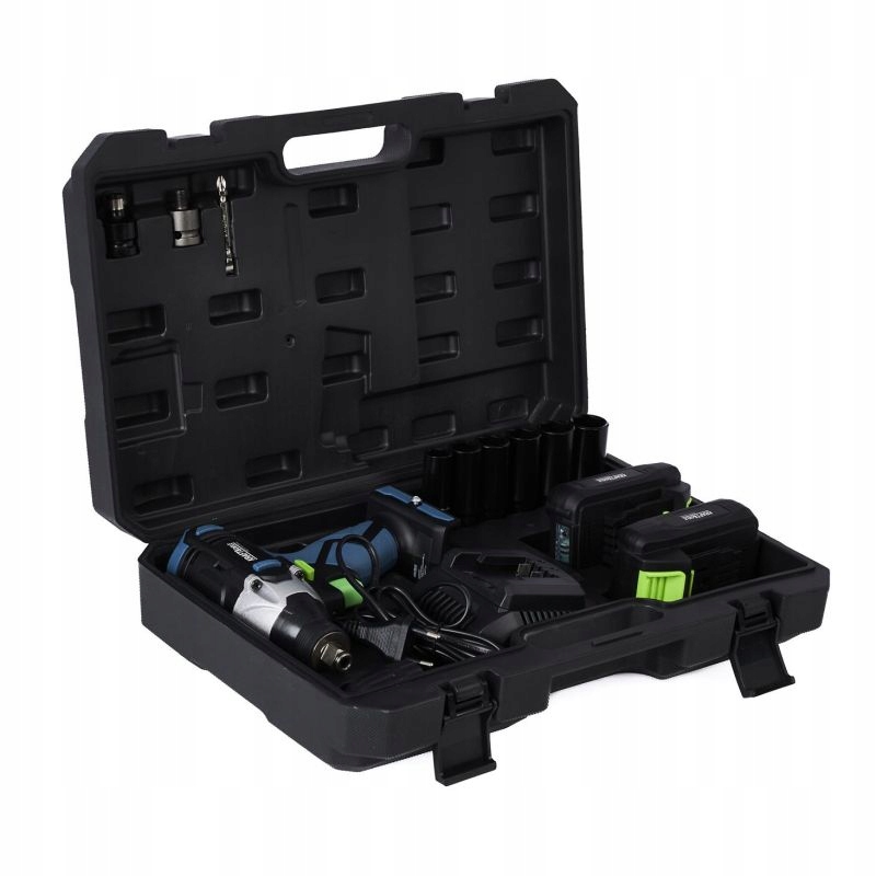 НАБОР УДАРНОГО КЛЮЧА 750 Нм 2x АККУМУЛЯТОРНЫЕ БАТАРЕИ 3 Ач 21 В + РАЗЪЕМЫ КОРПУС
