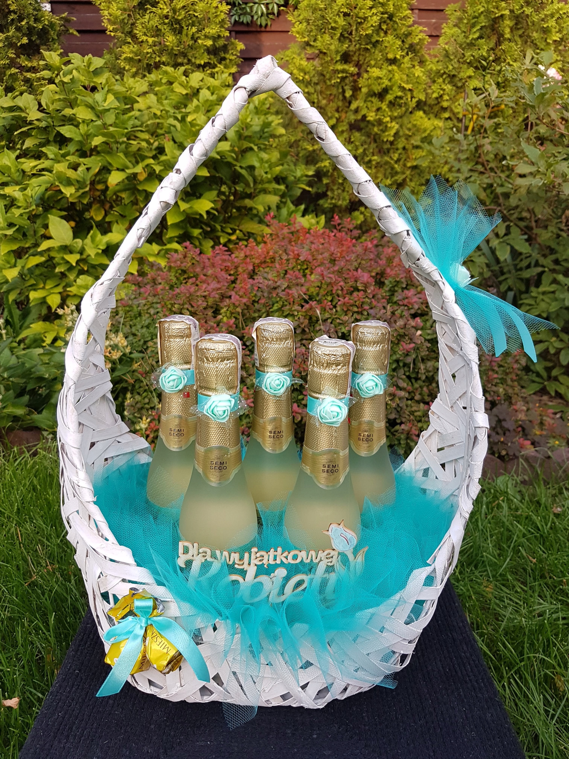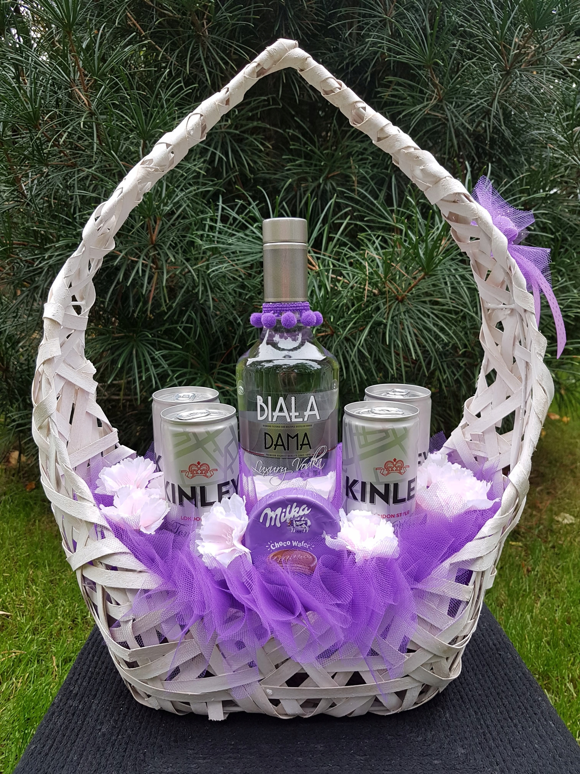 1. Плетеная корзина белая с пластиковым дном - готова дополнить деликатесом или другими выбранными продуктами (не включен в набор)