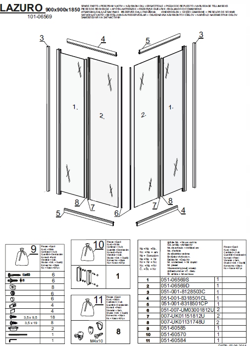 Набір ущільнень Квадрат LAZURO напівкруглий AQUAFORM